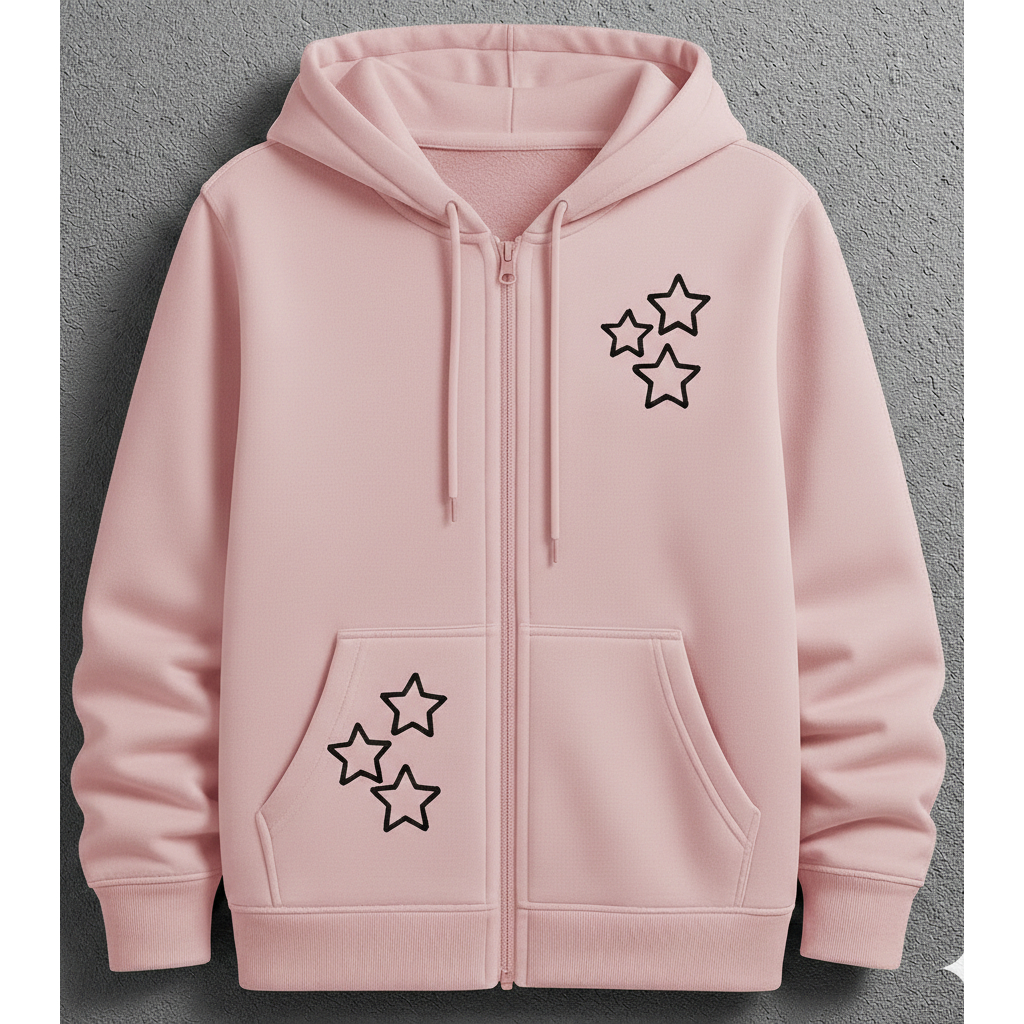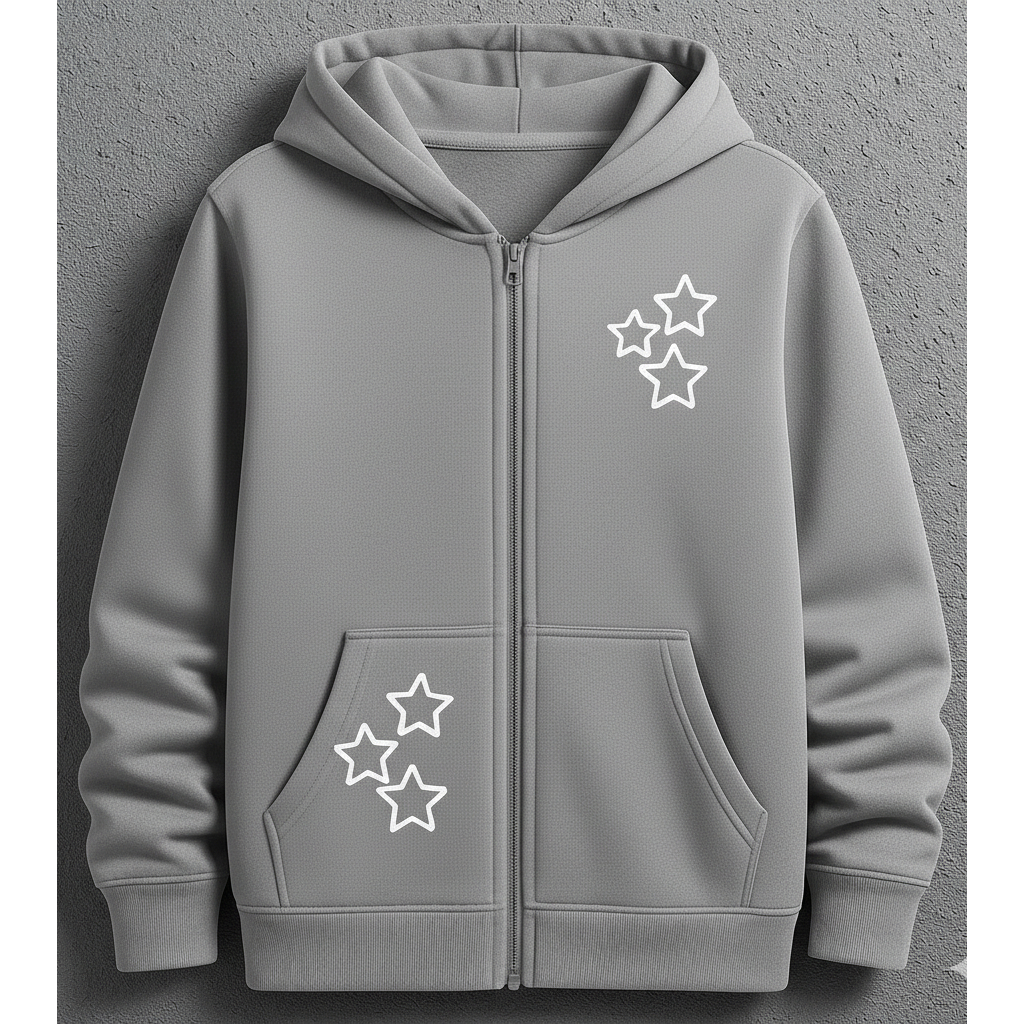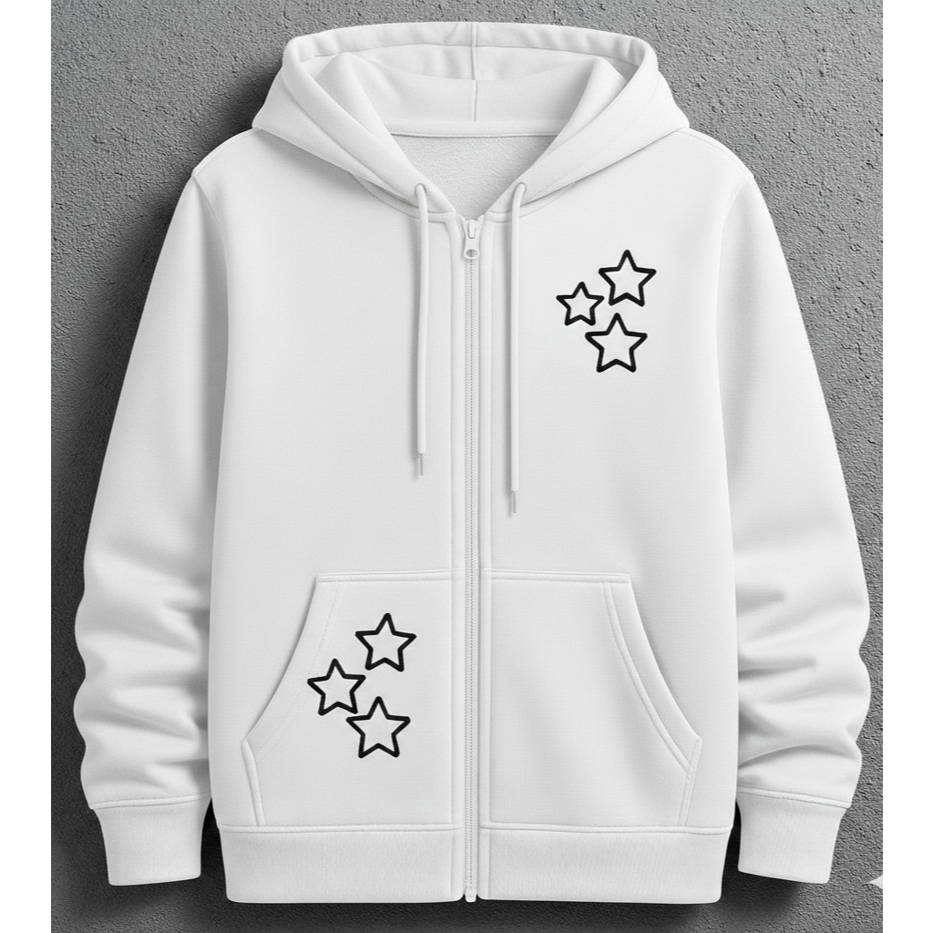 Moletom Estampado de Estrelas Ziper Estilo Urban Clean Minimalista