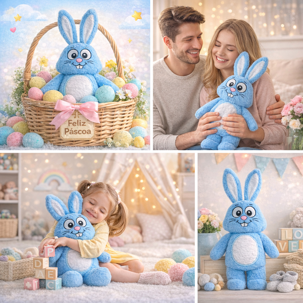 Kit Coelhos de Pelúcia Sansão Azul e Rosa Macios Médios e Grandes Pascoa Decorativos e Presente Perfeito