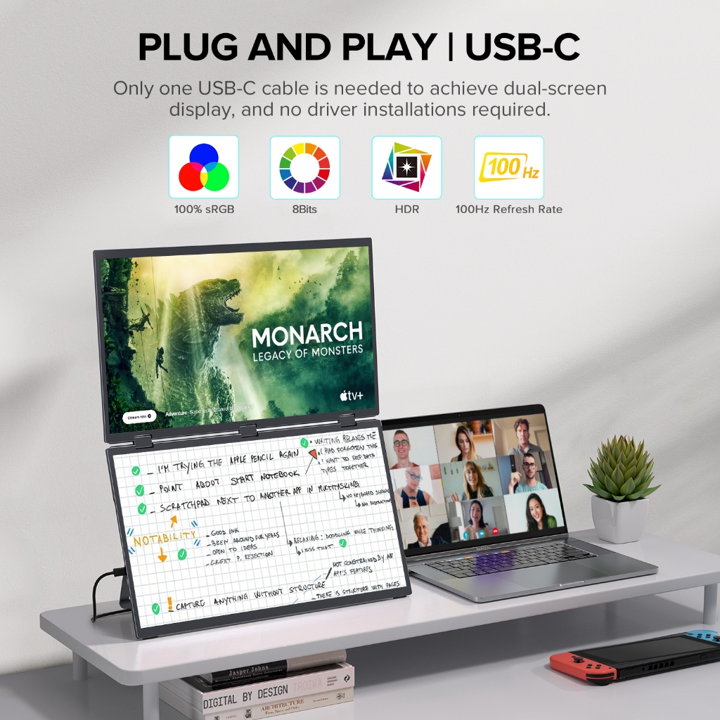 【Enviar do Brasil】UPERFECT portable Monitor Portátil Tela Dupla 18.5 inch 1080P 100Hz 1000:1 300Nits 100%sRGB Dua tela