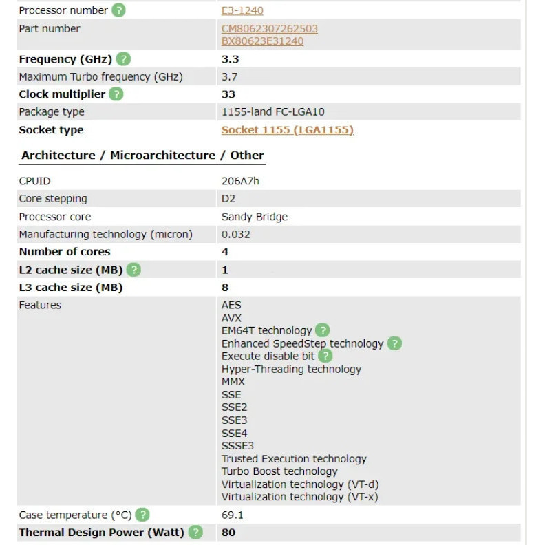 Xeon E3-1240 3.3GHz SR00K quad-core 8m cache LGA 1155 E3 1240 usado