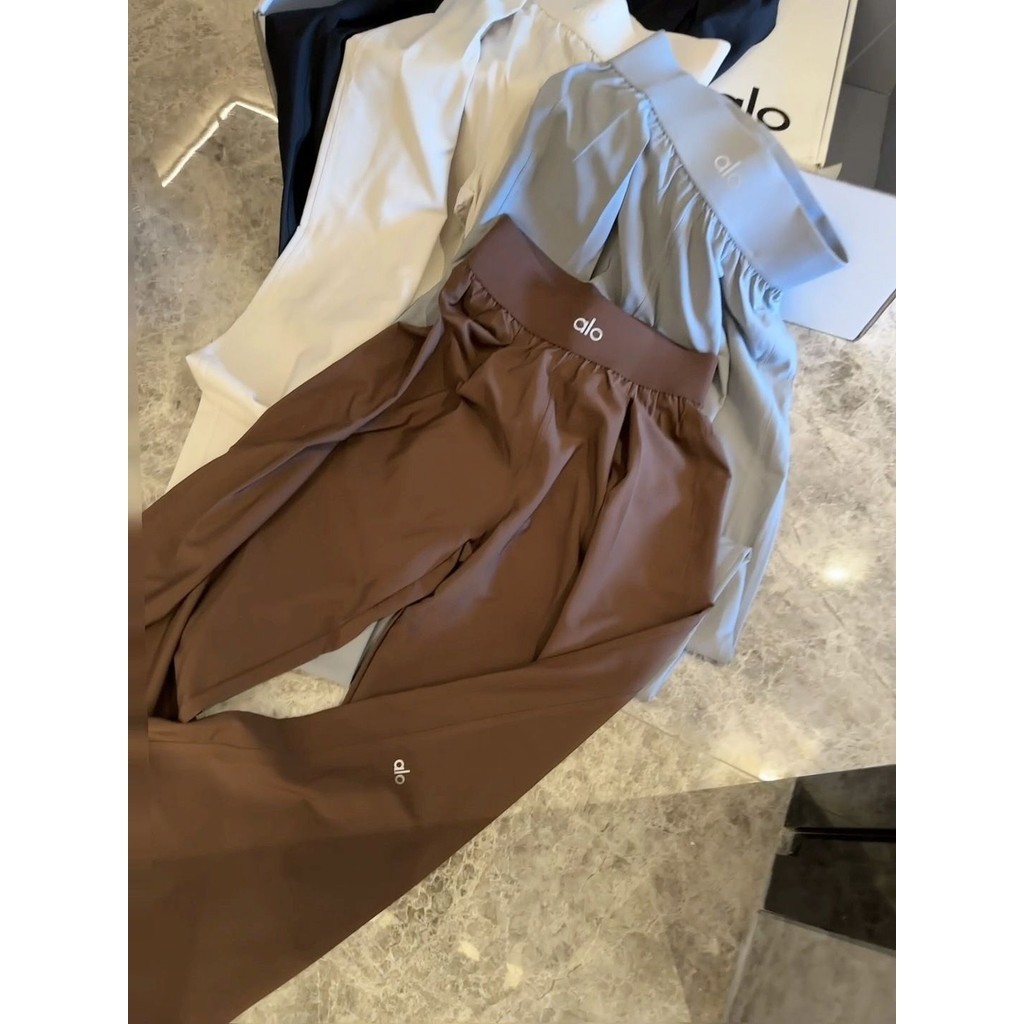 Calças de ioga AL0 Calças femininas de pernas compridas cintura alta elástica Casual calças de rede
