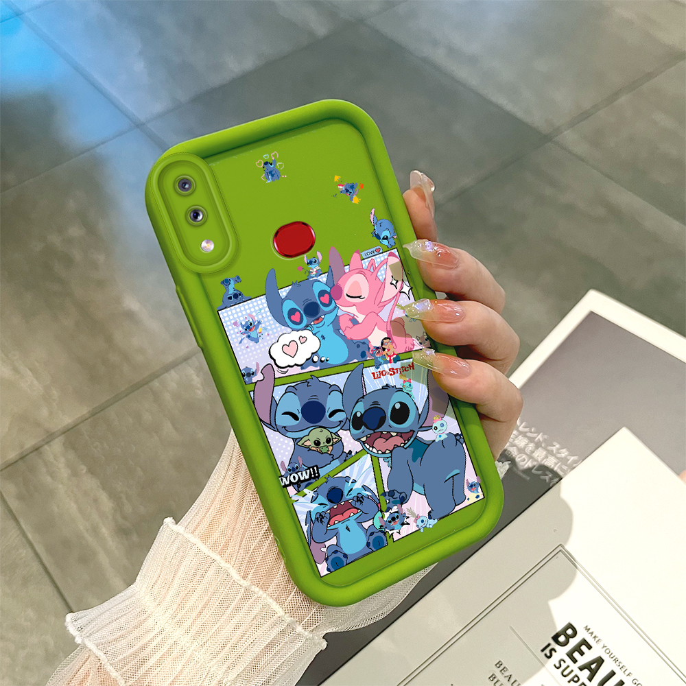 Capa Para Samsung Galaxy A10S Capinha De Celular Silicone Macia Protetora Do Telefone Móvel Caso Rosa Verde Stitch 0379