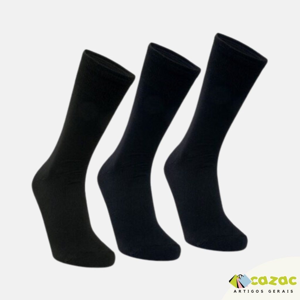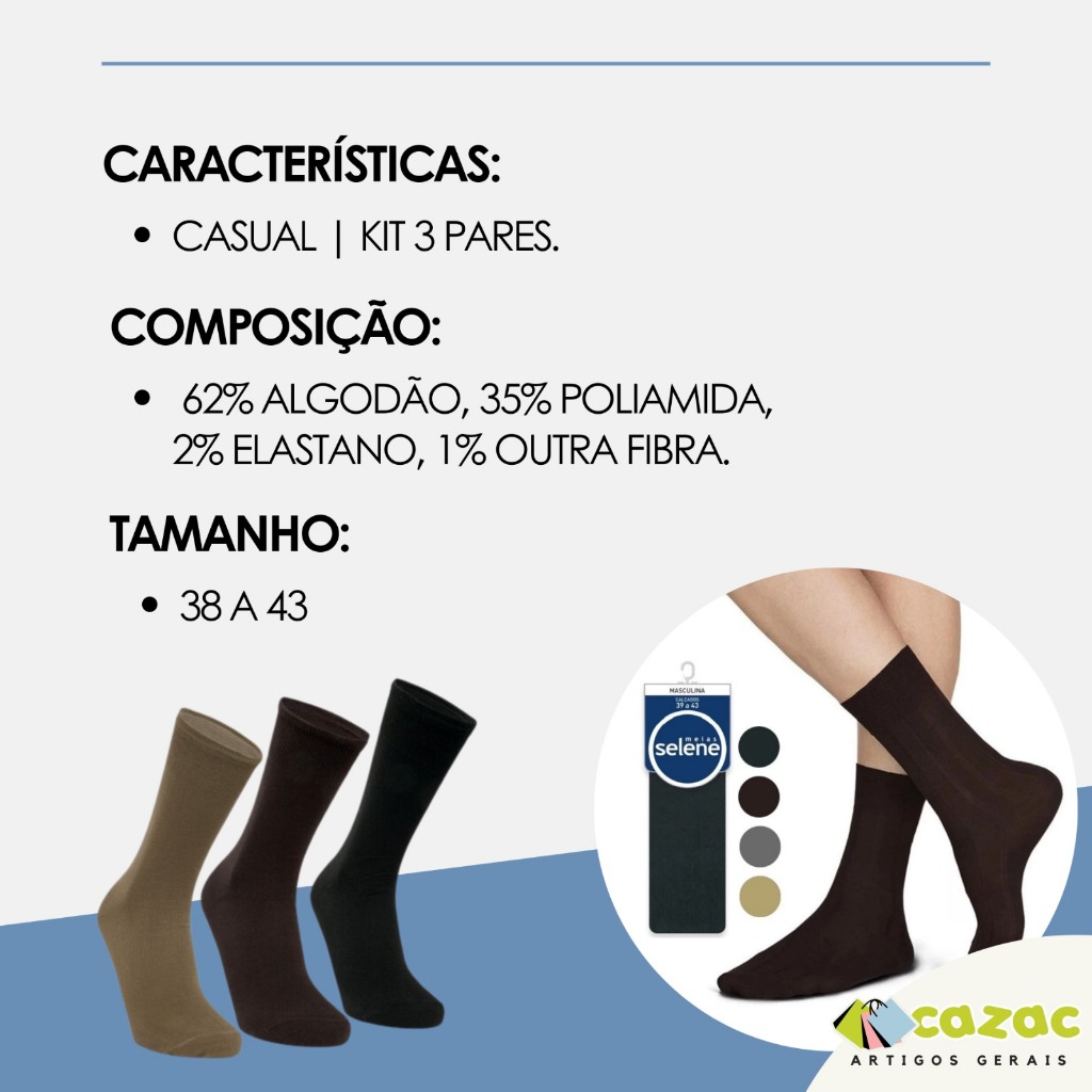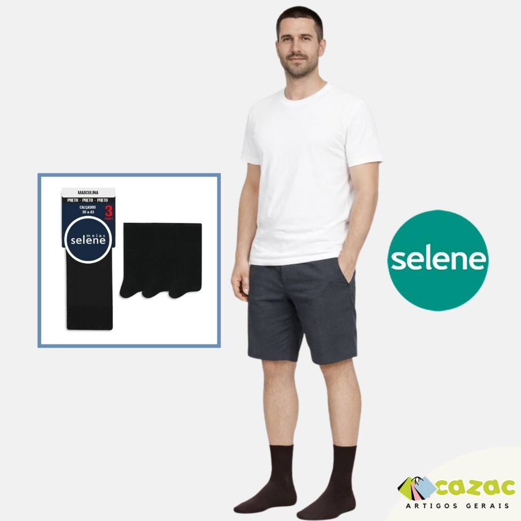Kit 3 Pares Meia Selene Cano Longo Masculina Lisas Algodão Original Premium 39 ao 43