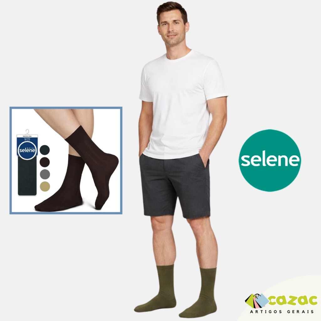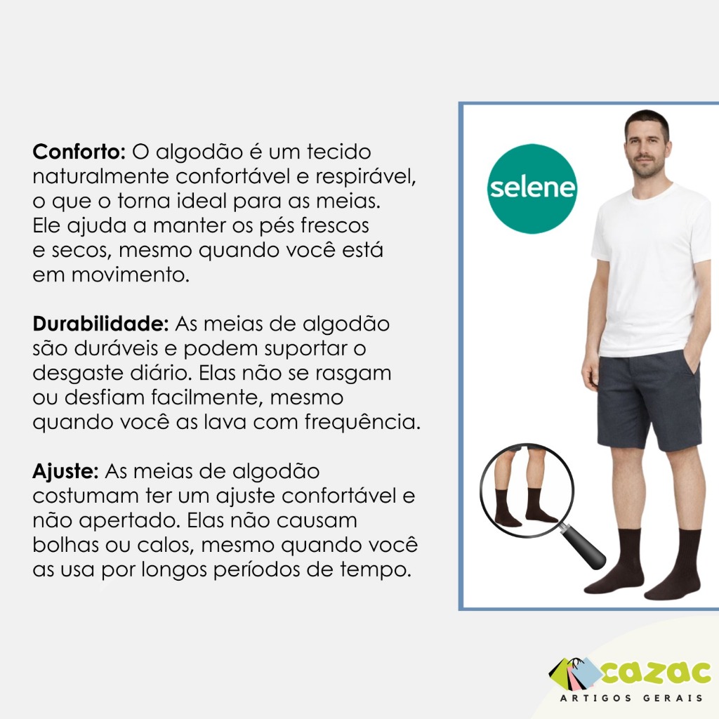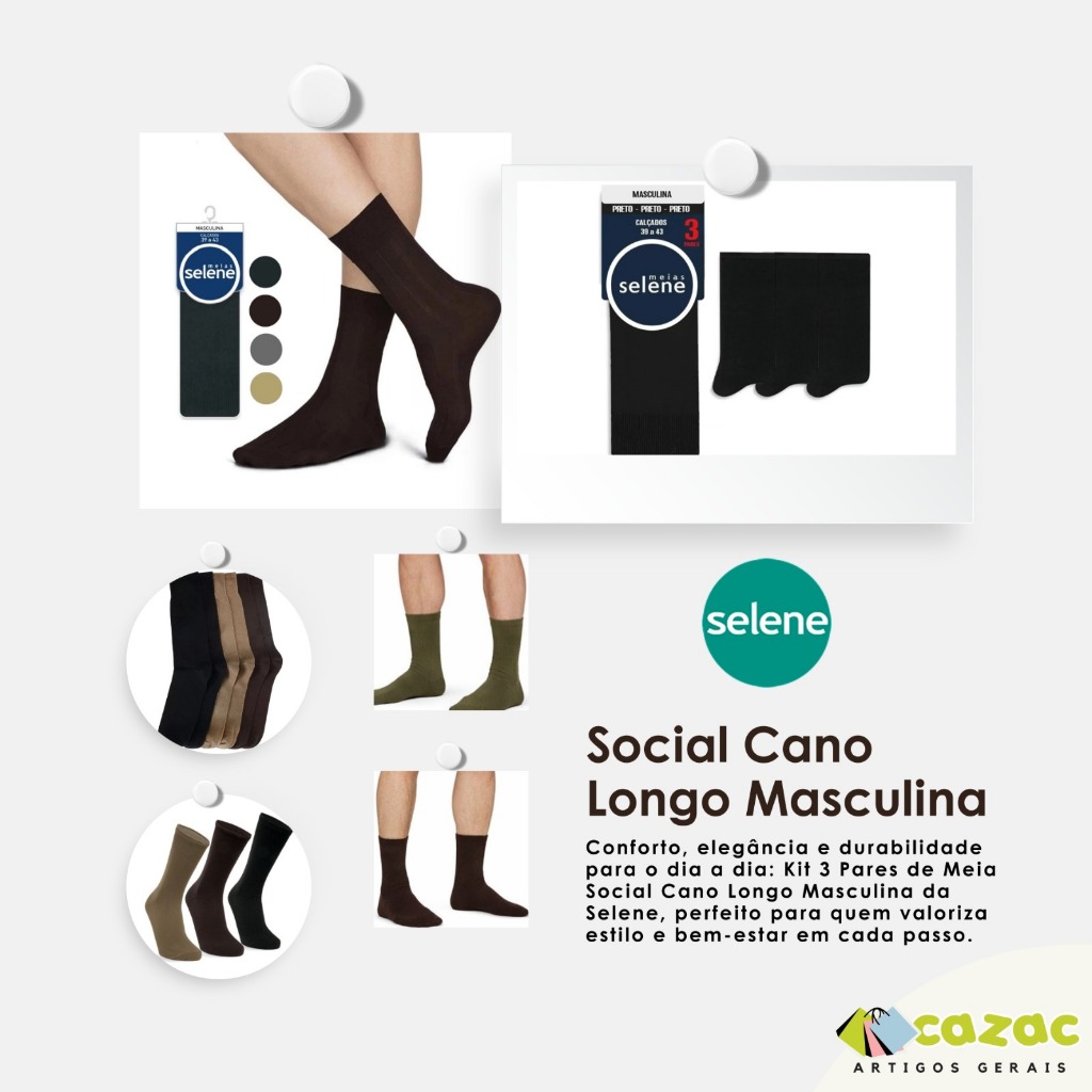 Kit 3 Pares Meia Selene Cano Longo Masculina Lisas Algodão Original Premium 39 ao 43