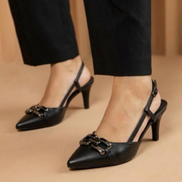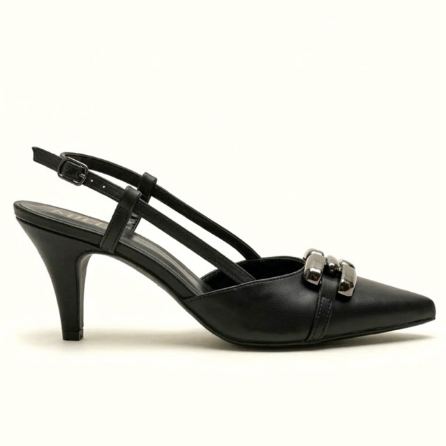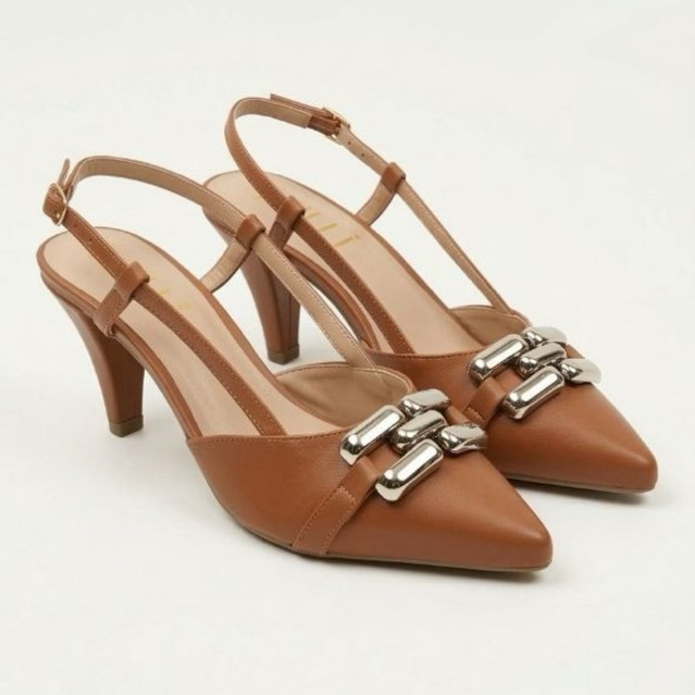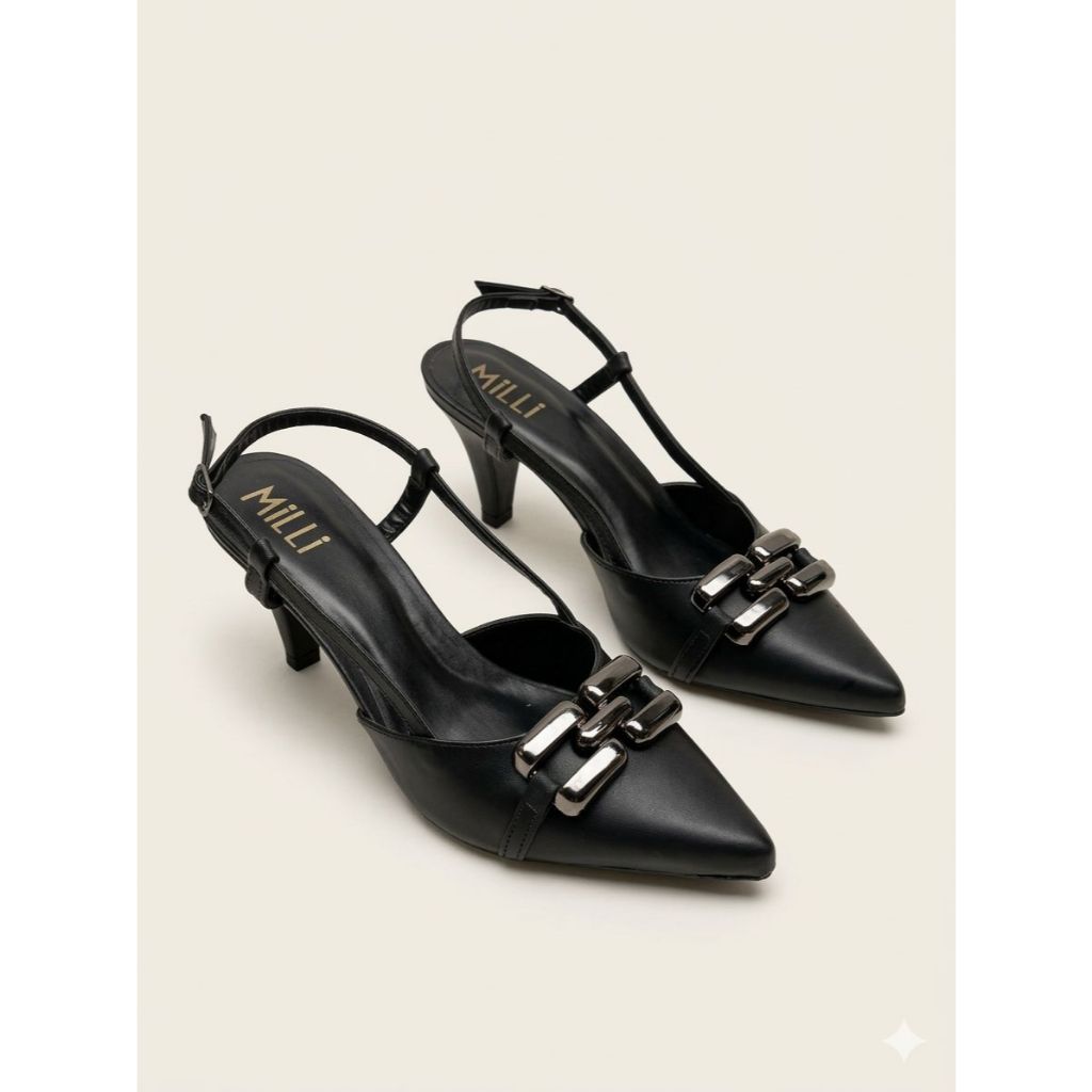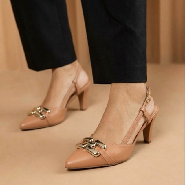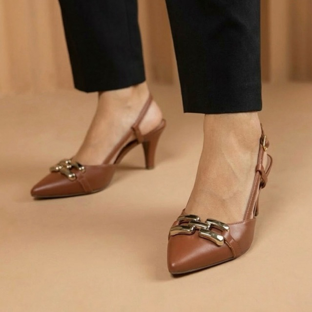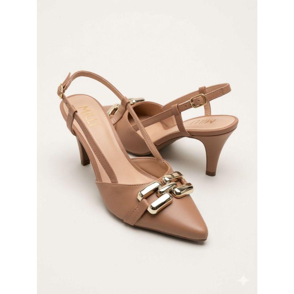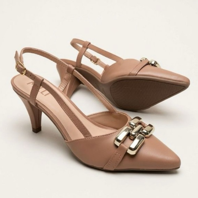 Sapato Scarpin Moda Feminina Milli Napa Salto Baixo 6cm C/ Fivela Dourada Bico Fino Casual Reforçada