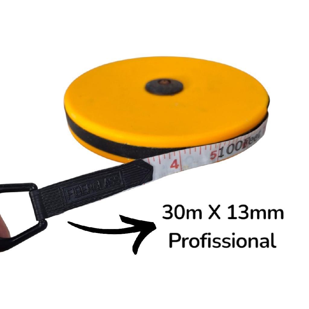 Trena Métrica Fita 13mm X 30 Metros Amarelo Medição Aferição Medida Resistente Leve Durável