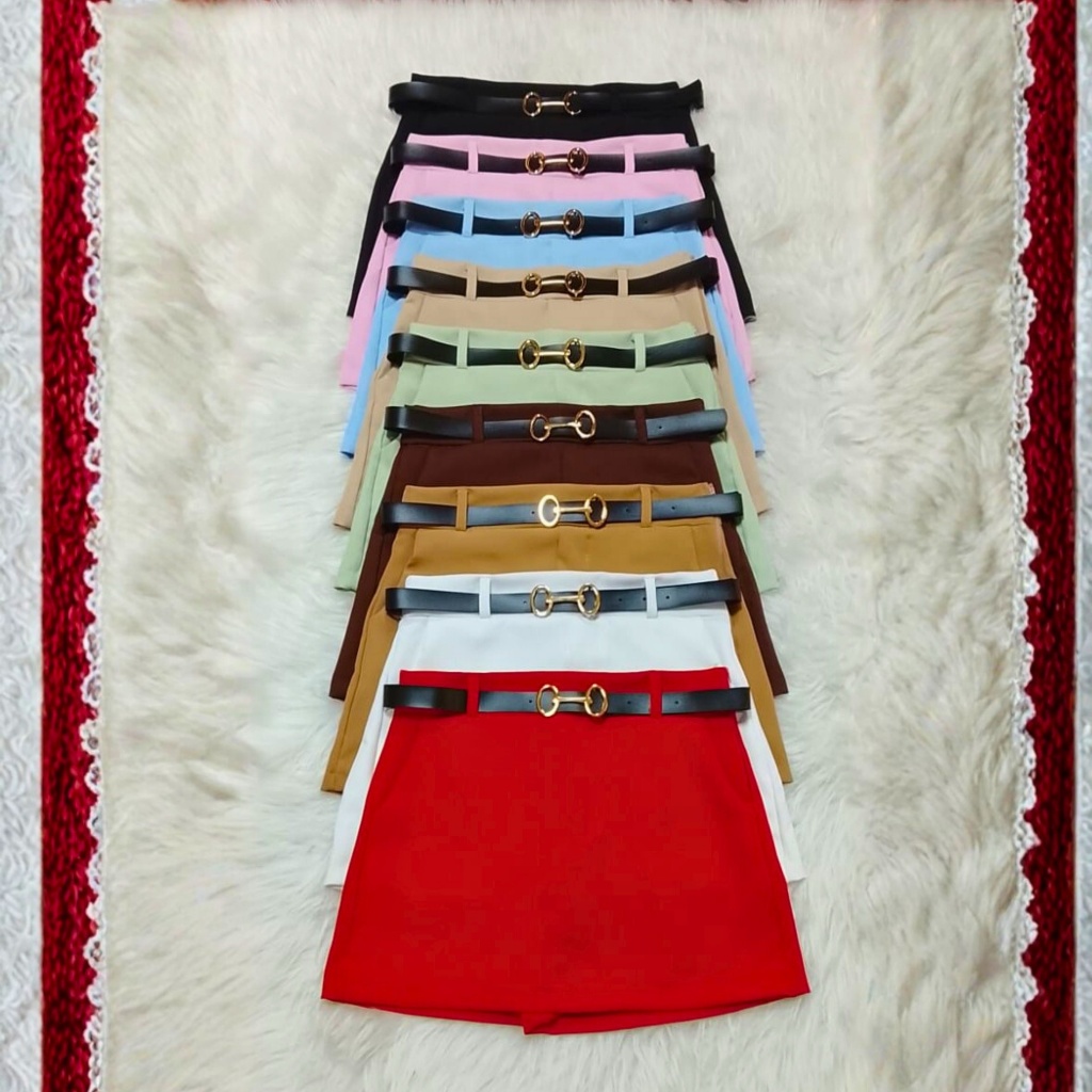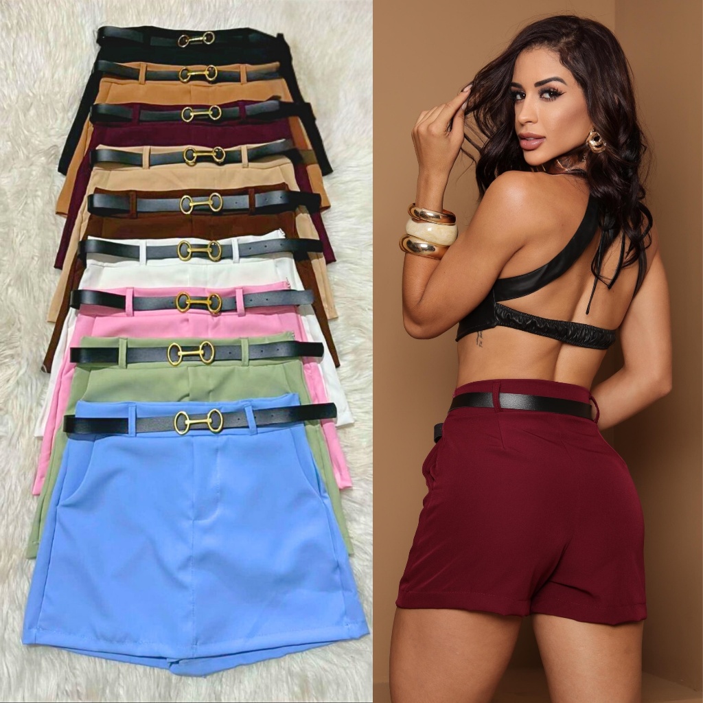 Short Saia Feminino | Saia Na Frente Short Atrás Com Cinto de couro