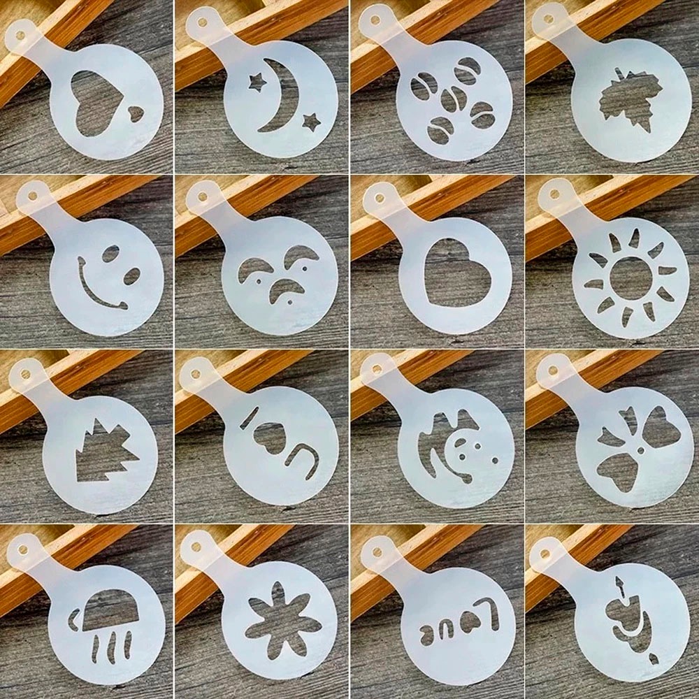 Kit com 16 Moldes Stencil Barista Café Expresso Polvilhar Desenhos no Café