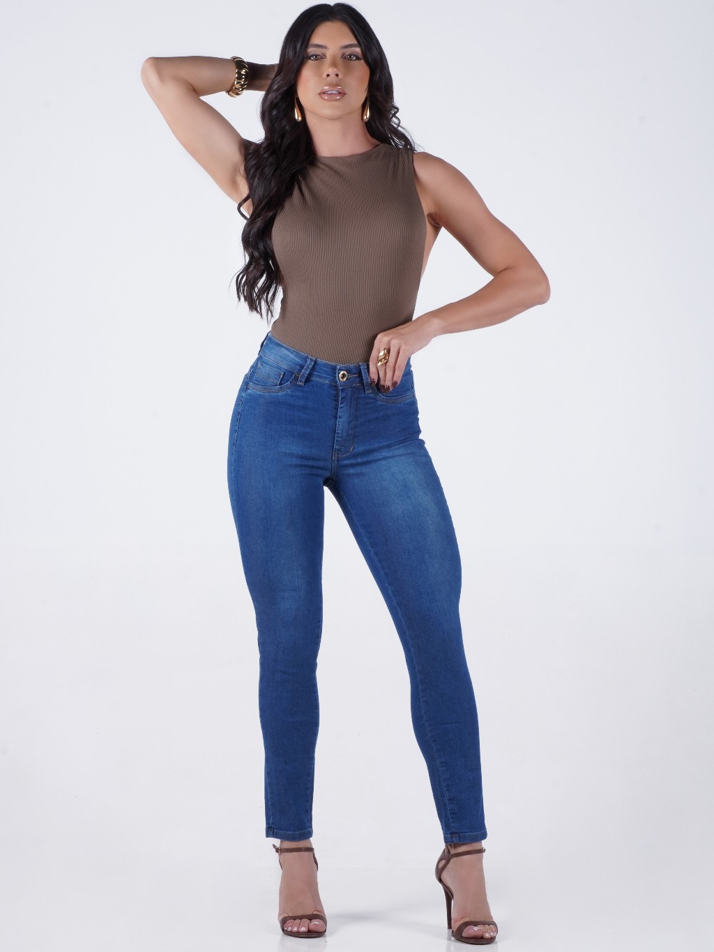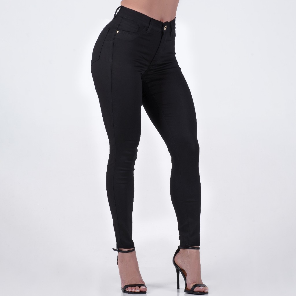 Calça Jeans Feminina Skinny Lycra Cintura Alta Empina Bumbum