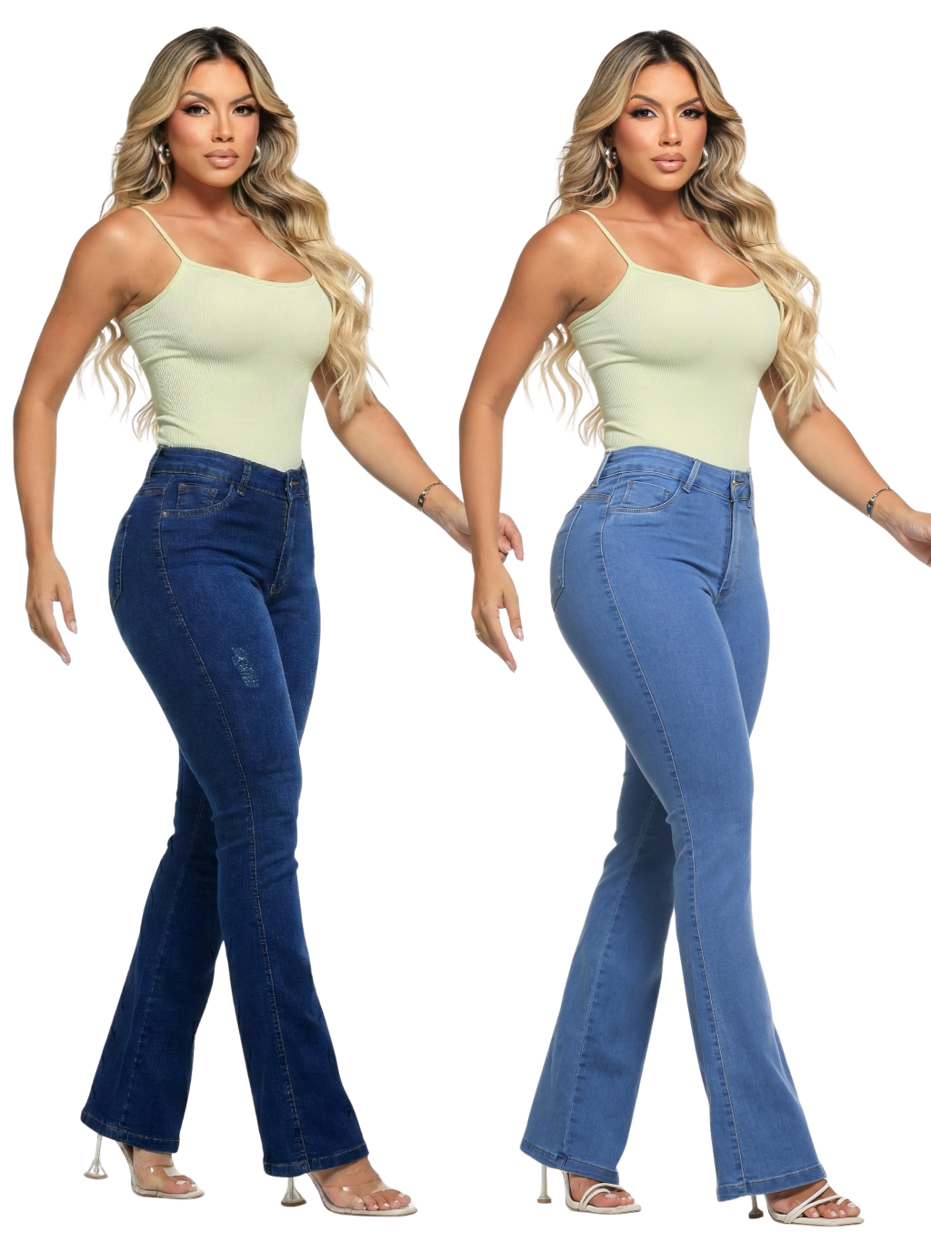Kit 2 Calças Flare Feminina Jeans Com Elastano Cintura Alta Premium