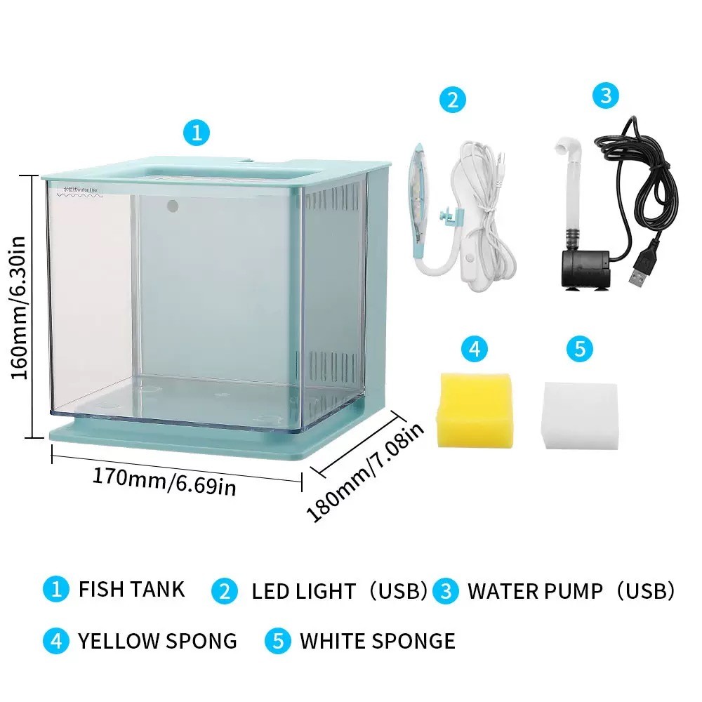 Mini Aquário Completo 5L C/ Led Bomba Submersa Filtro Bivolt 2 Cores