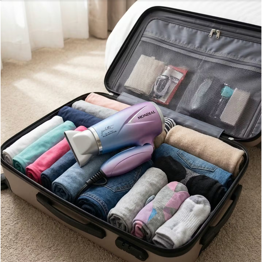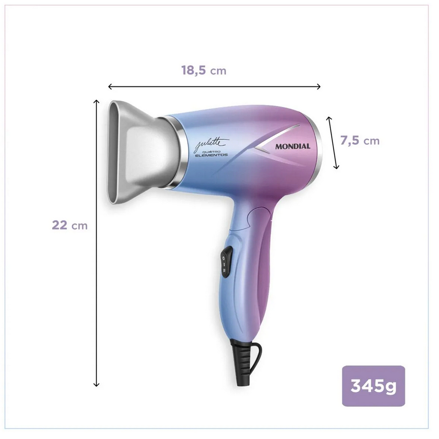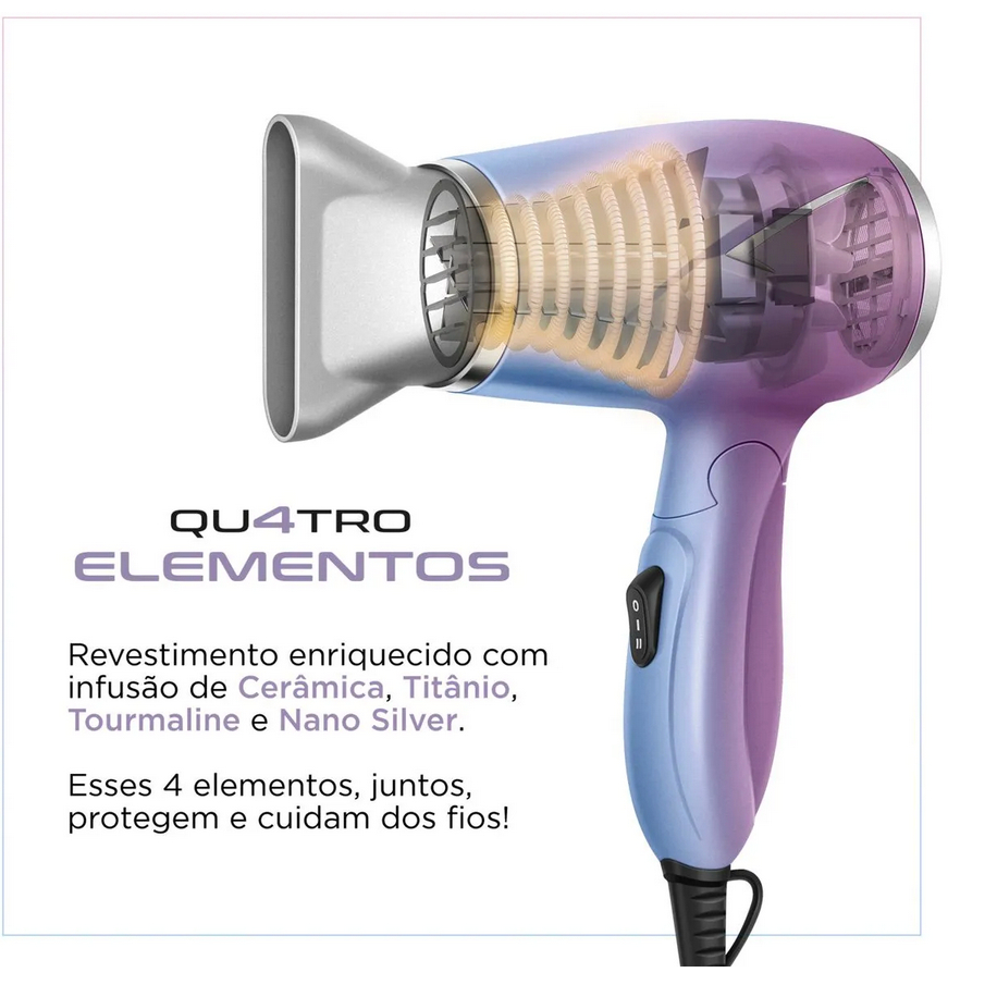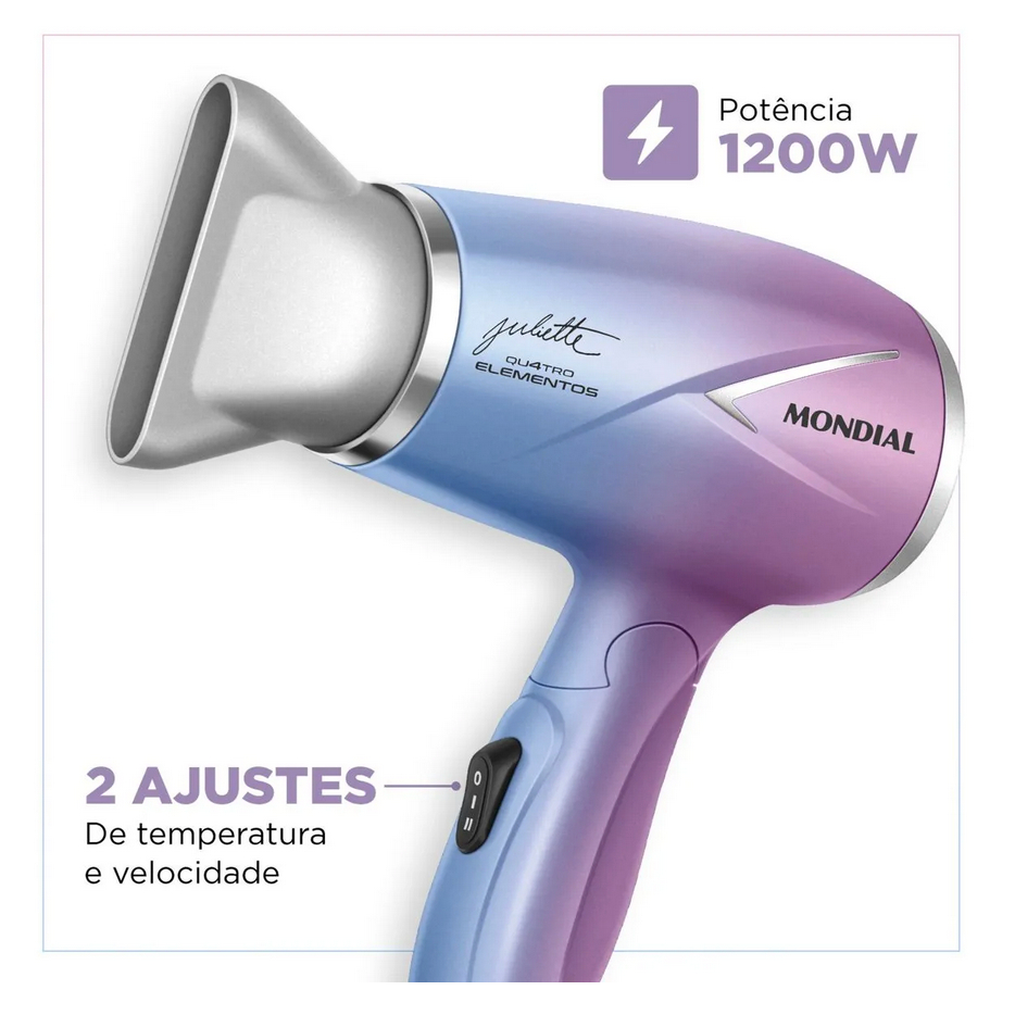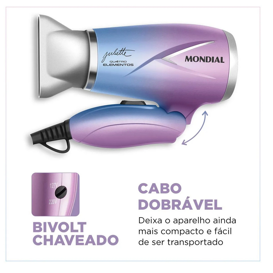 Secador De Cabelo P/ Viagem By Juliette Mondial Sct-ju-03 Cor Azul/rosa 110v/220v Portatil