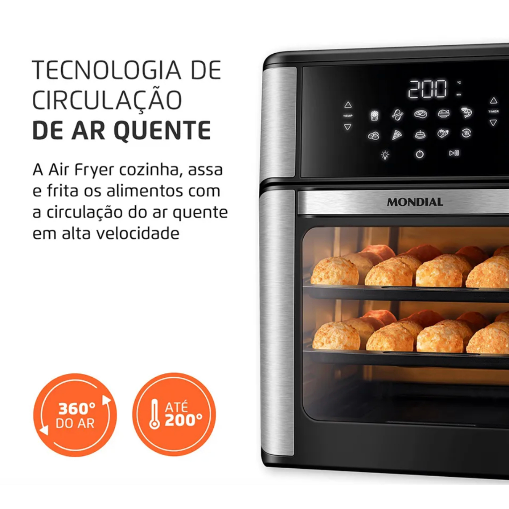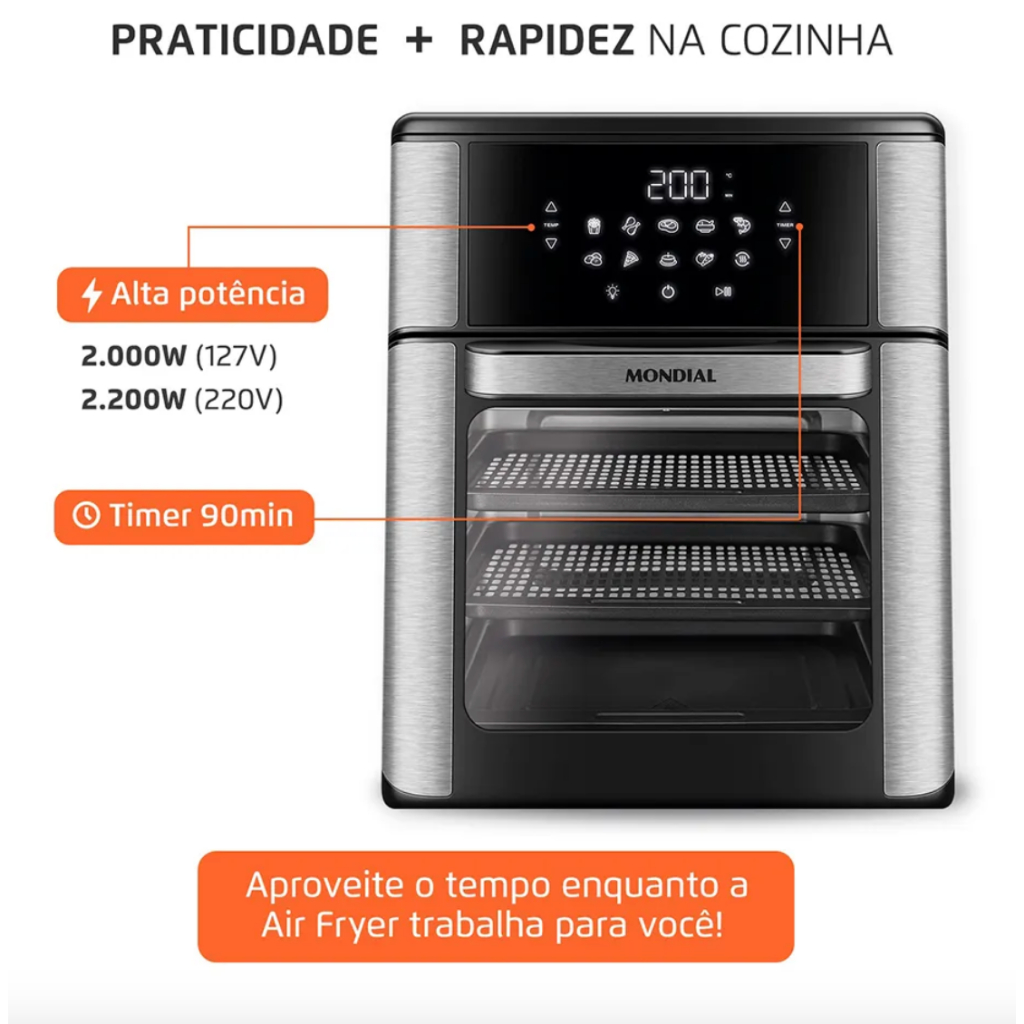 Fritadeira Air Fryer Forno Oven 12L Mondial 2000W/2200W AFON-12L-BI 110/127V ou 220V