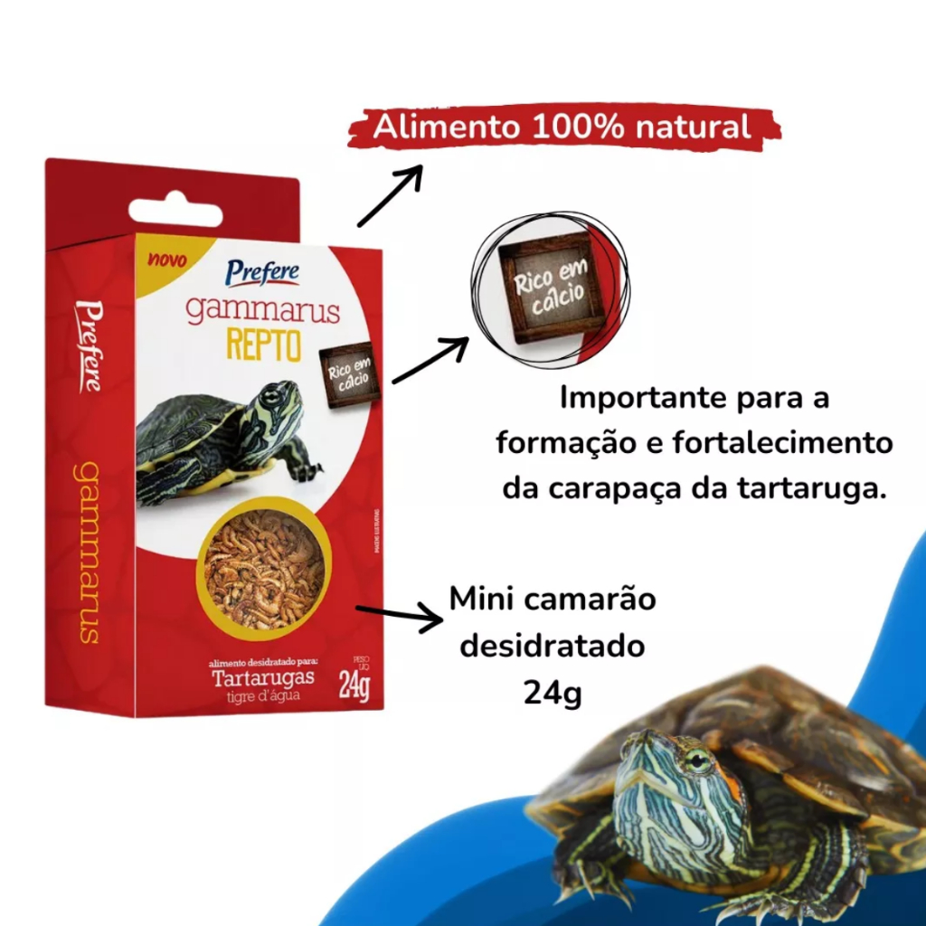 Alimento Desidratado para Tartarugas Tigre Dágua 12g , 24g ou 48g ração Prefere Gammarus Repto
