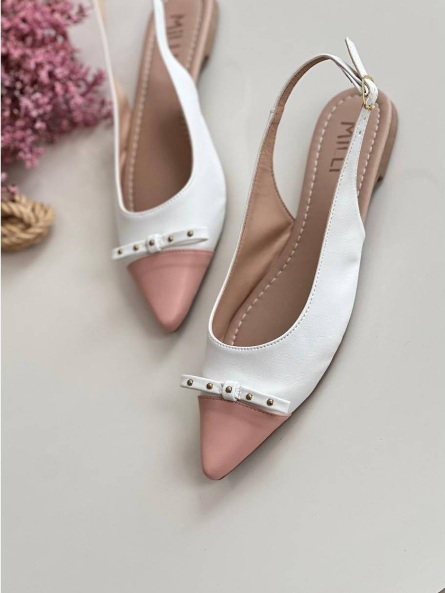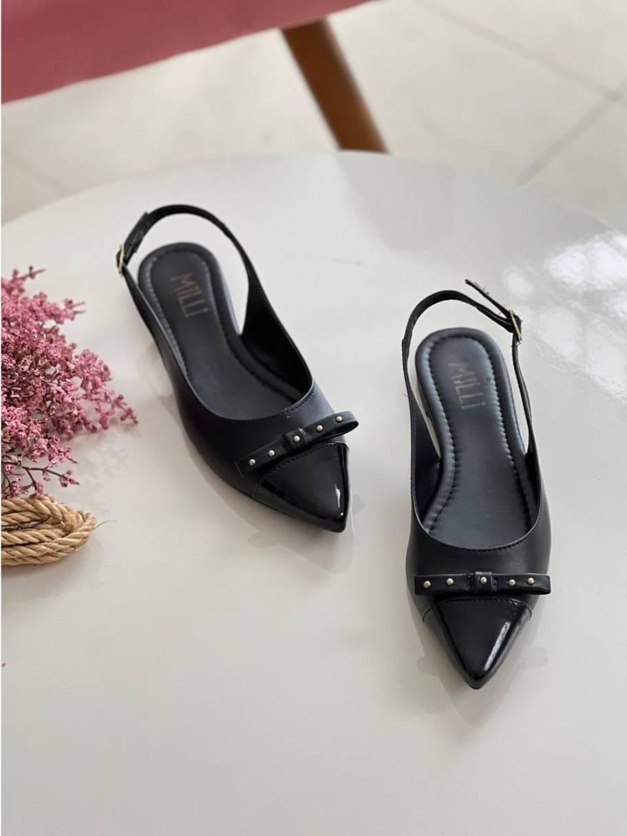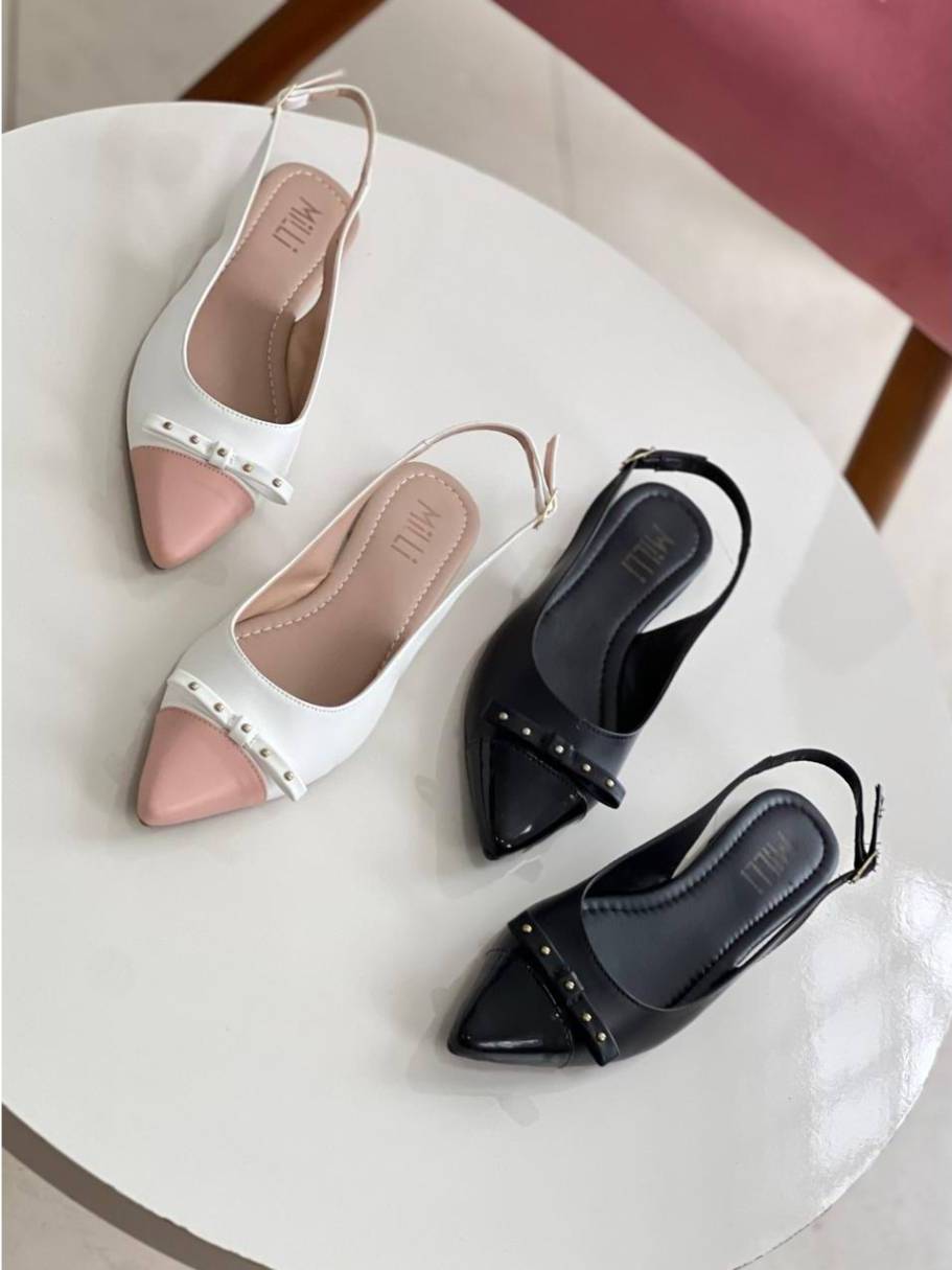 Sapatilha Slingback Bico Alongado com Enfeite de Taxinha Moderna Casual