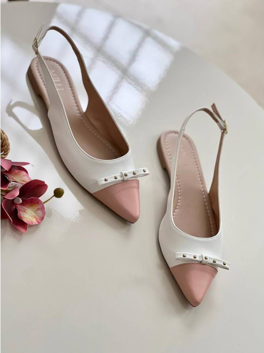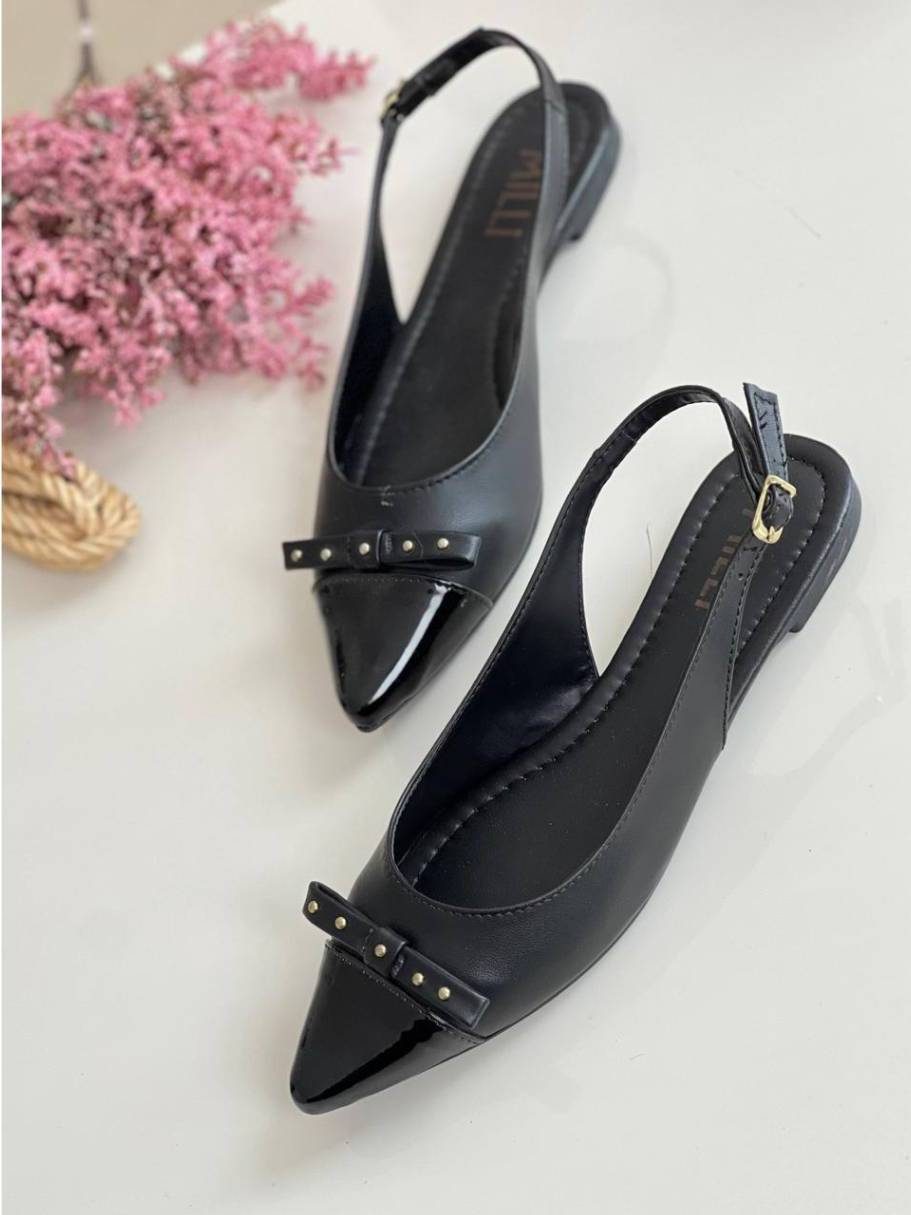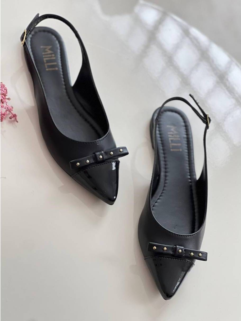 Sapatilha Slingback Bico Alongado com Enfeite de Taxinha Moderna Casual