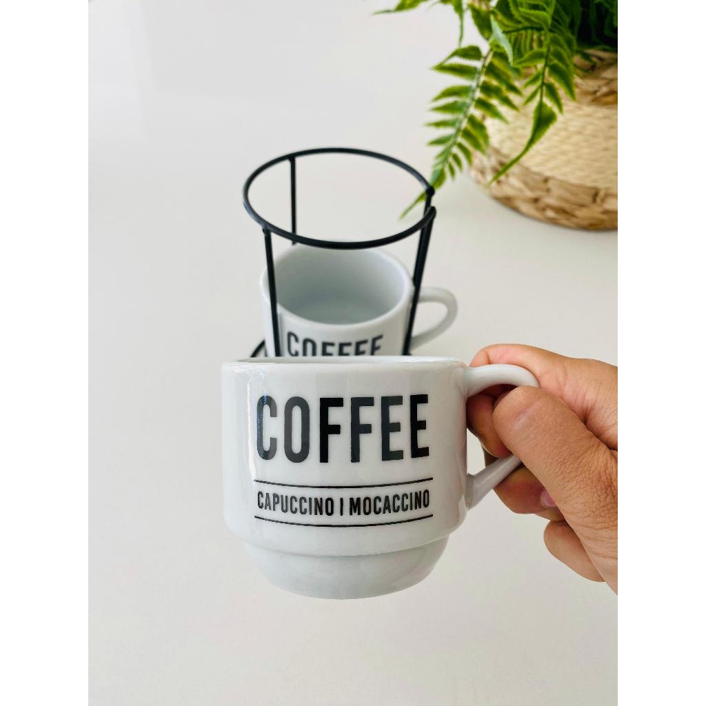 Xicara Empilhavel Coffee Capuccino Mocaccino Branca Preta 200 ml Café Chá