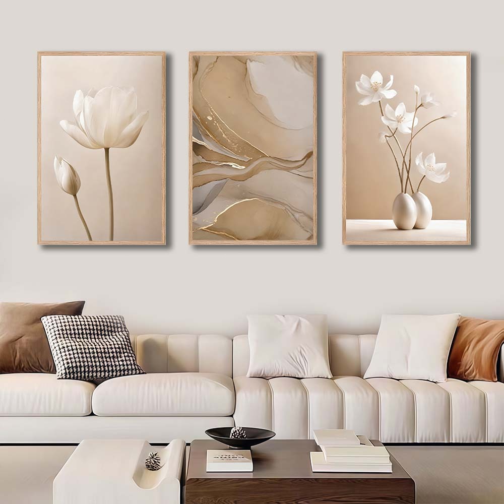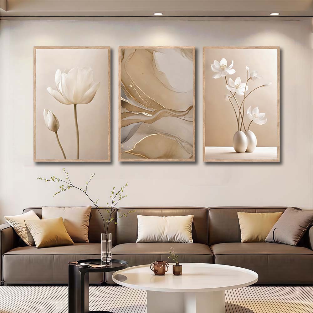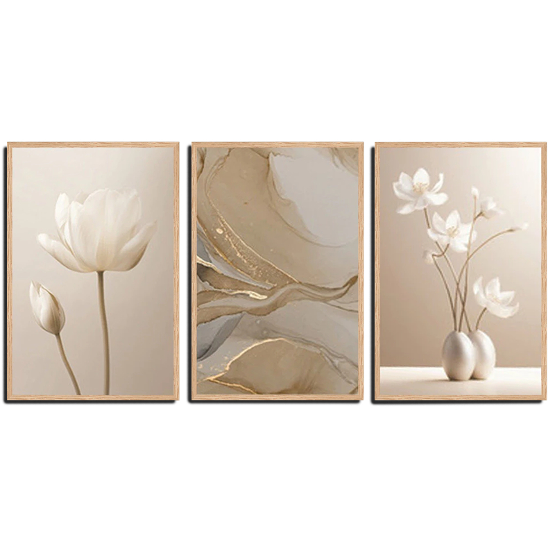 Kit 3 Quadro Decorativo Peças Abstrato Flores Flor De Lótus Sala Quarto Escritório Decorativo