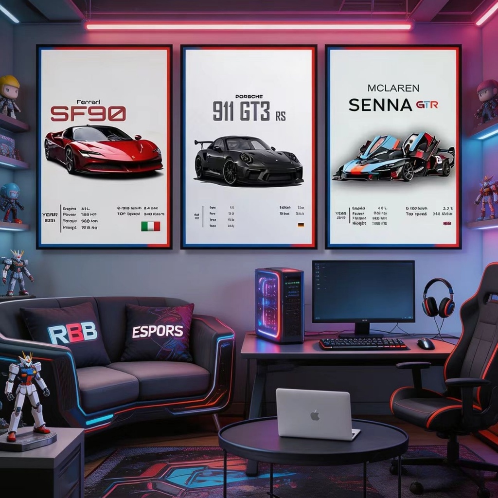 Kit 3 Quadros Carros Esportivos Ferrari Porsche McLaren Velocidade Potência Decoracao Escritorio Quadros Decorativos