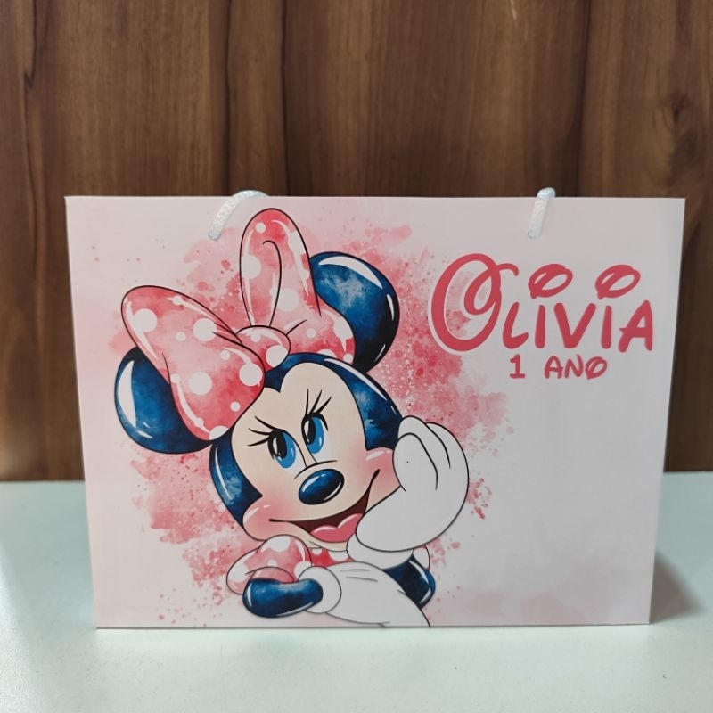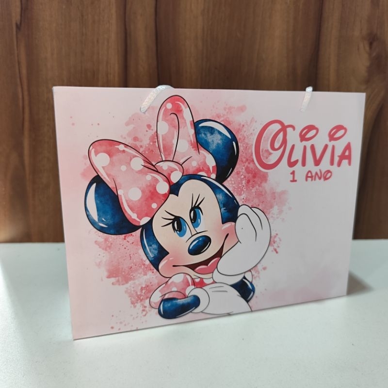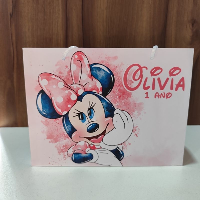 Sacolinha Personalizada Minnie Rosa Aquarela - Pegue e Monte