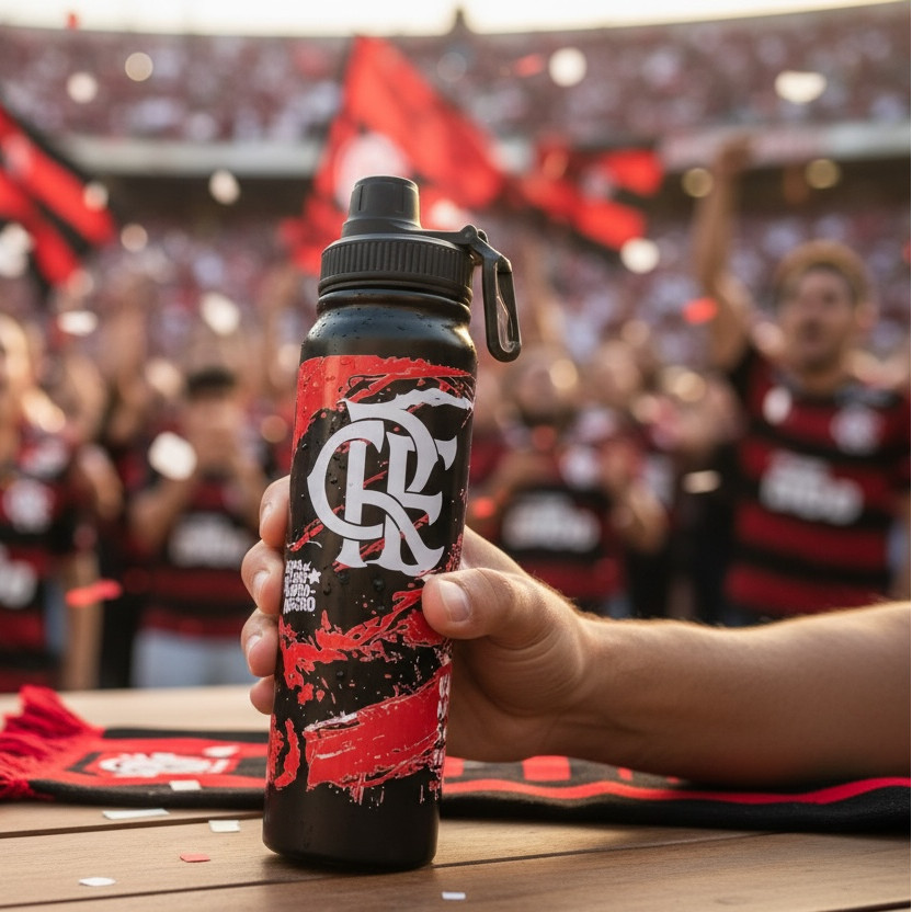 Garrafa Inox Térmica Personalizada do Flamengo 360 Graus Mengo Com Seu Nome 800ml Mágica Show