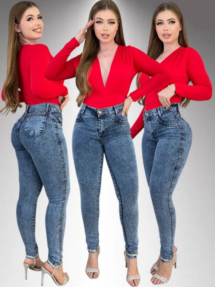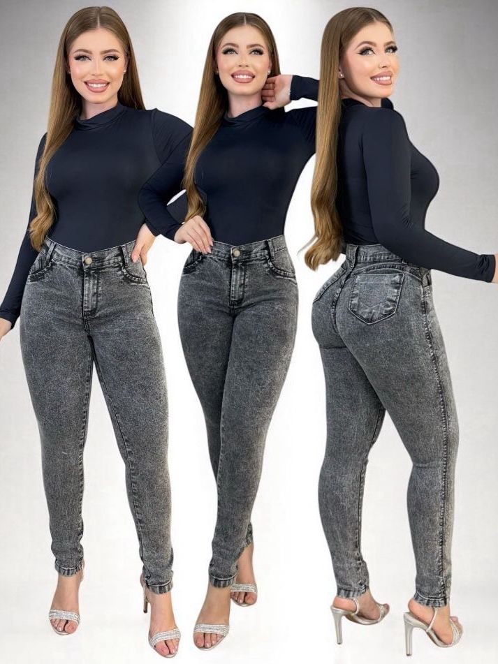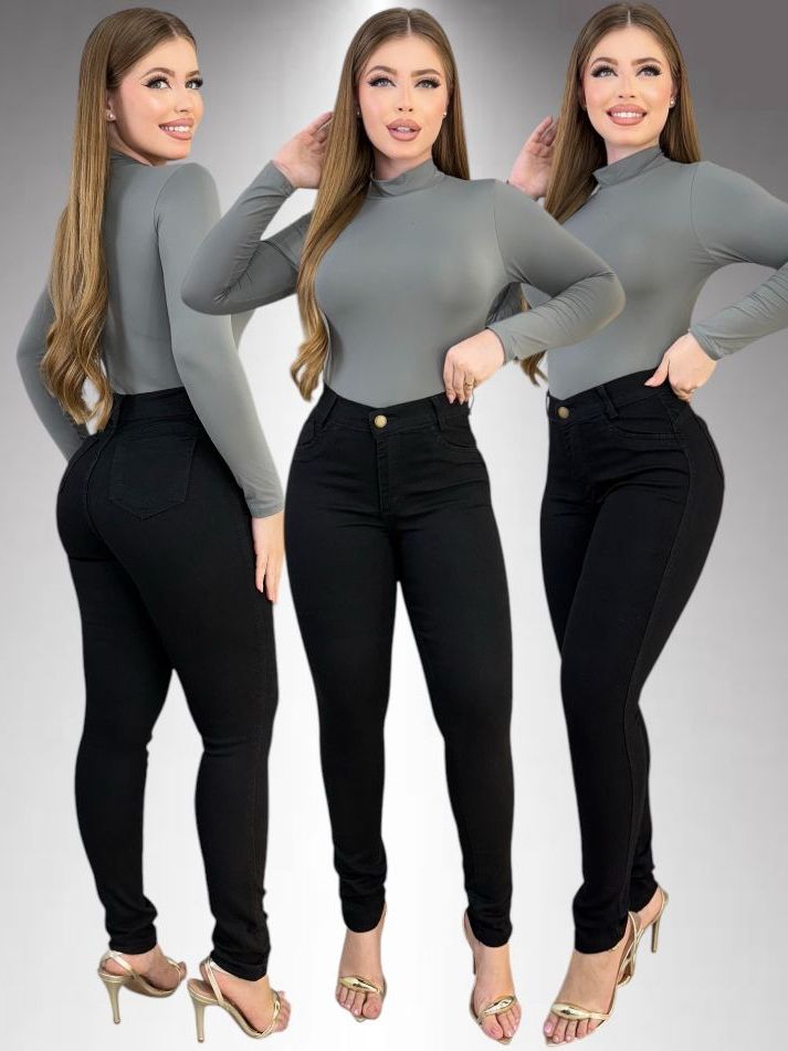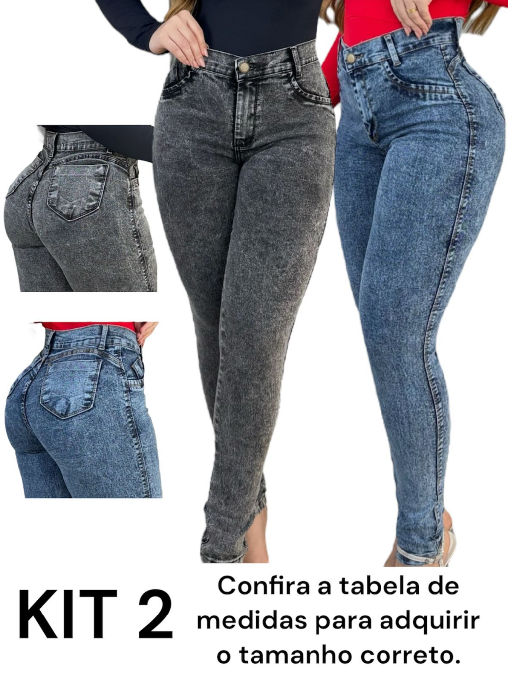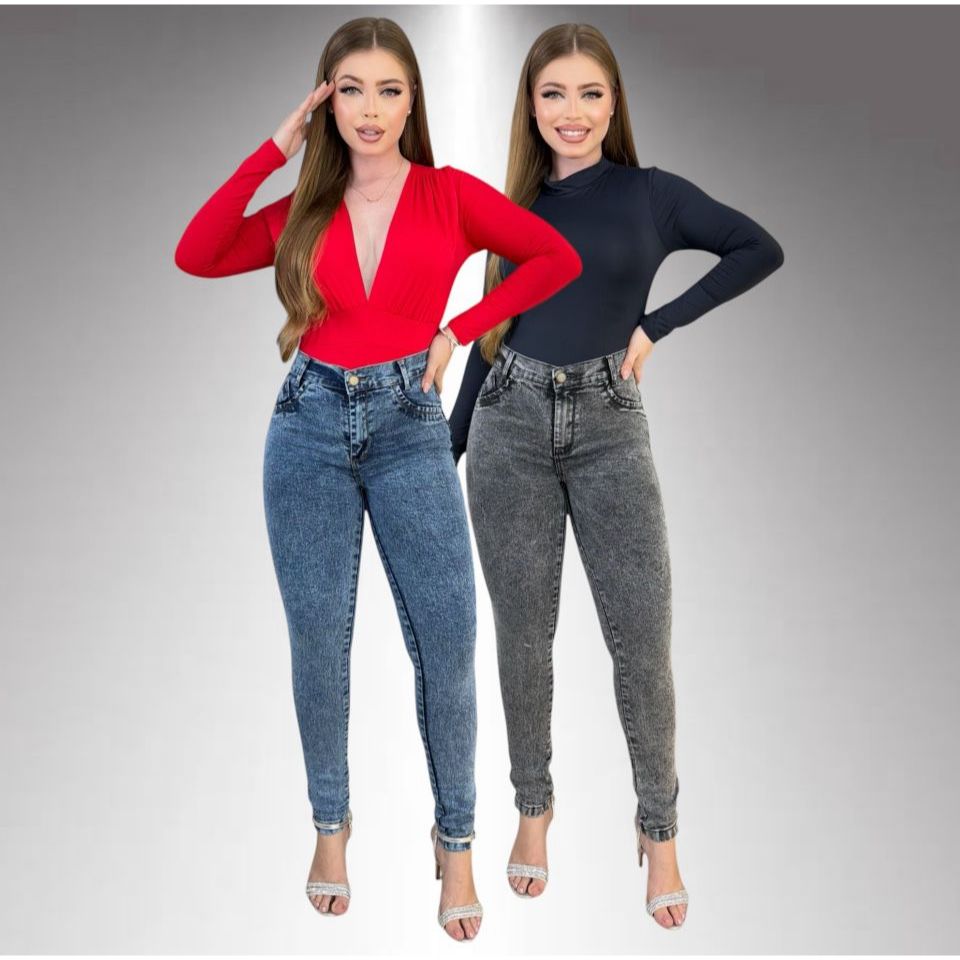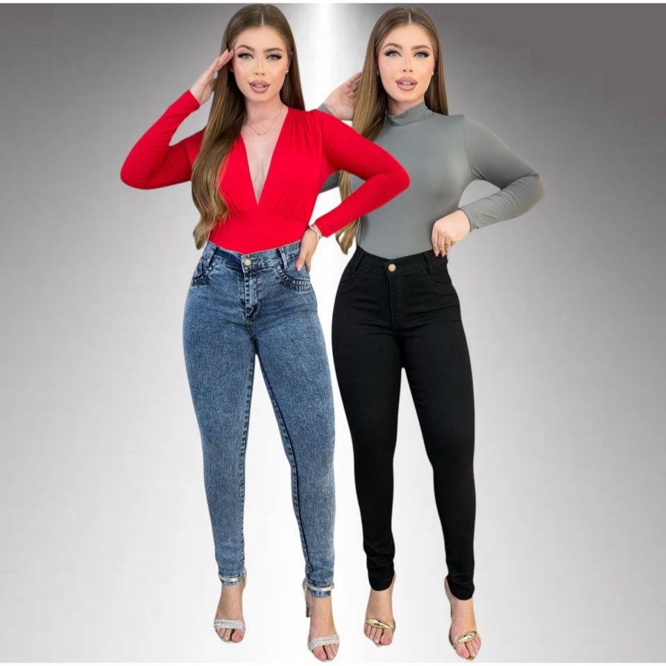 Kit 2 Calças Jeans Feminina Skinny Lycra Cintura Alta Modelo Empina Bumbum Lançamento Promoção