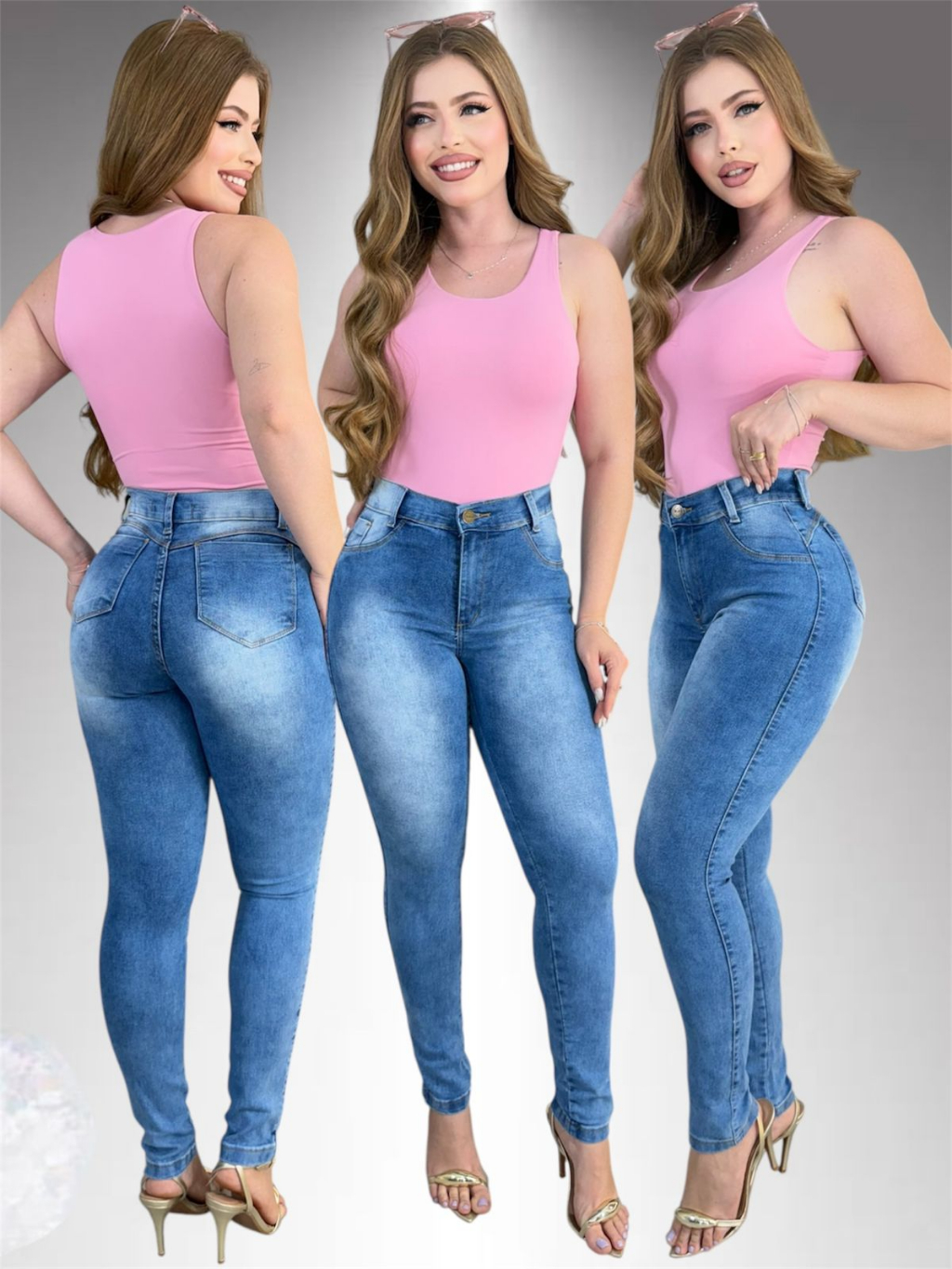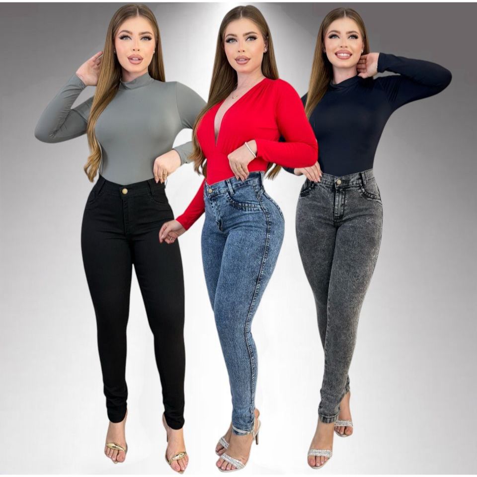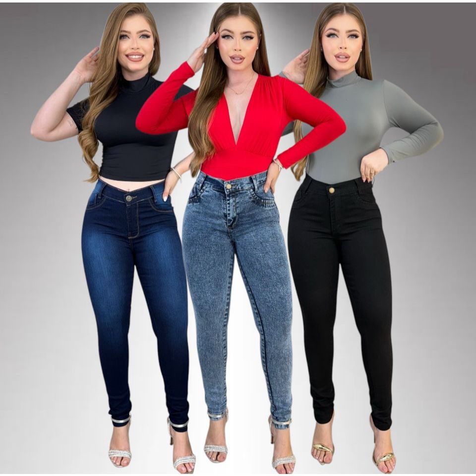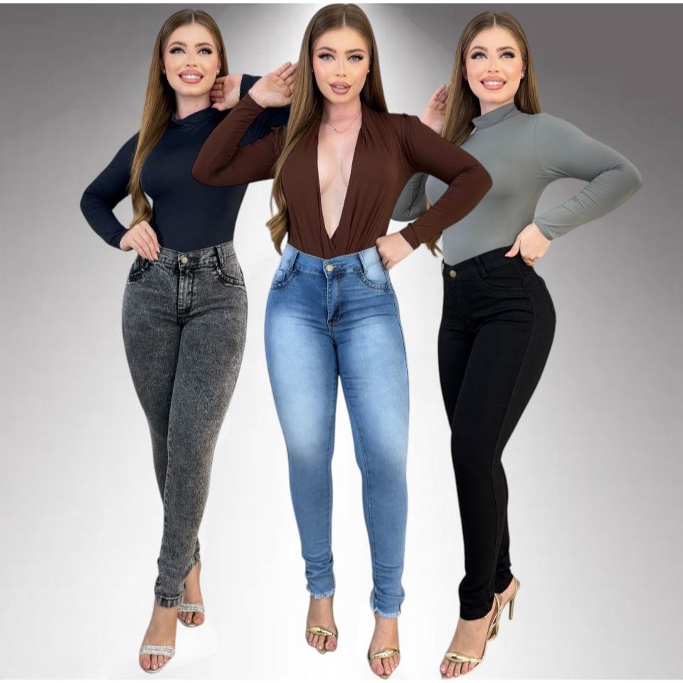 Kit 3 Calças Jeans Feminina Skinny Lycra Cintura Alta Modelo Empina Bumbum Lançamento Promoção