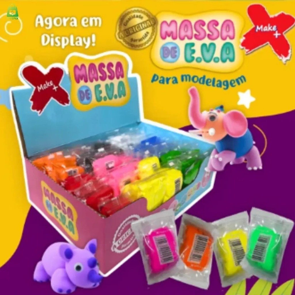 Massa Eva Modelar 480g 8 Cores Sortidas Com 48 Unidades Infantil Diversão Brinquedo Artesanatos Atividades Escolares