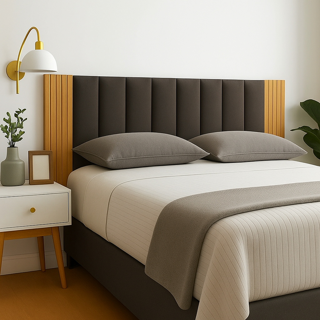Kit 10 Peças Cabeceira Modular + Painel Ripado MDF Para Cama Box Casal King Queen - Envio Full