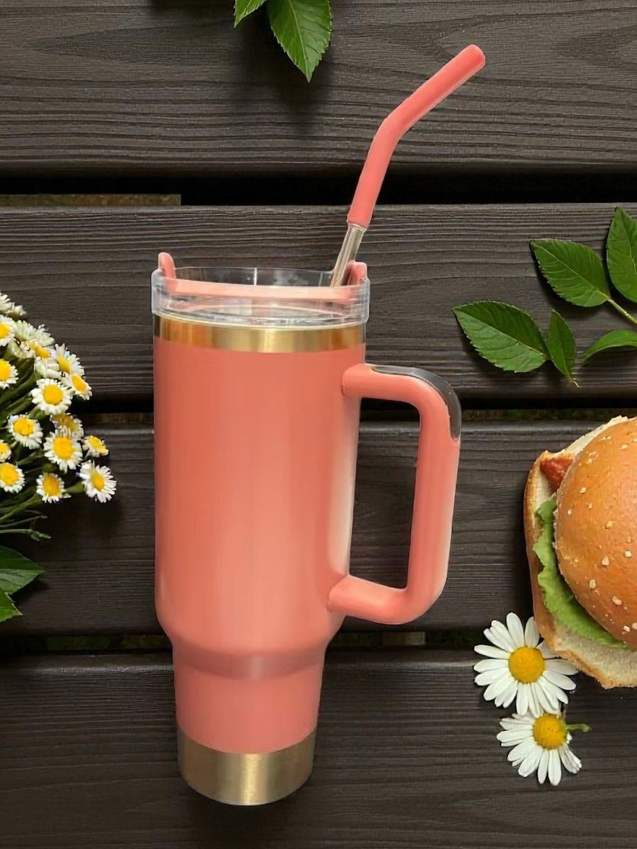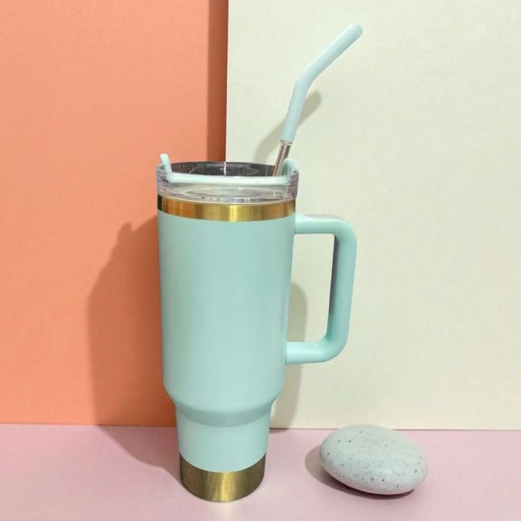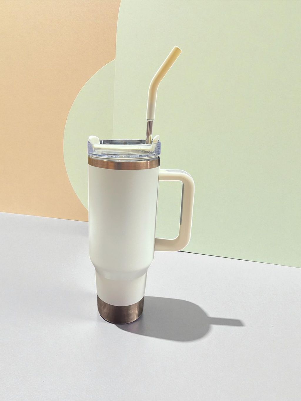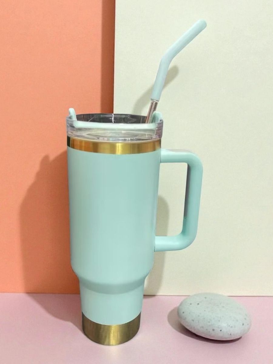 Copo Térmico Inox Alça Flip Straw SEM LOGO com canudo INOX 1200ml Qualidade