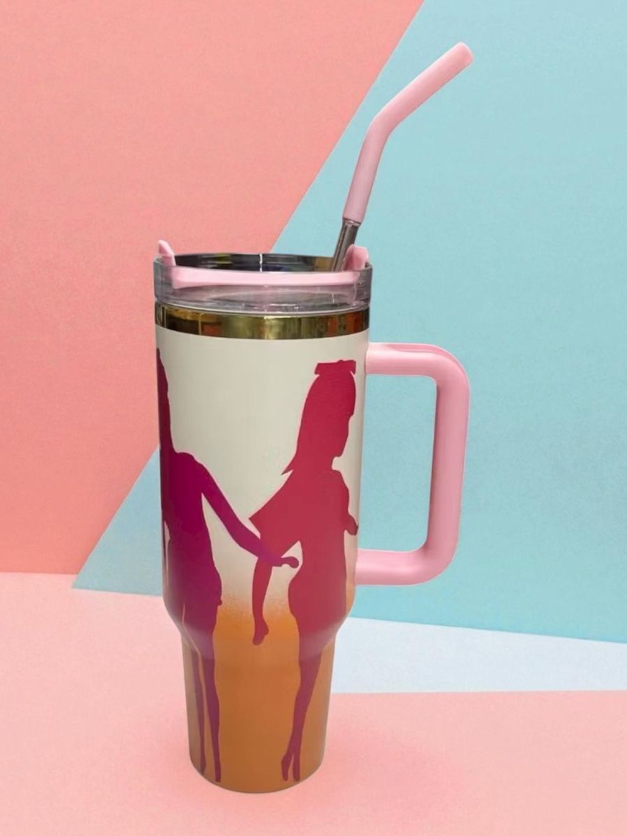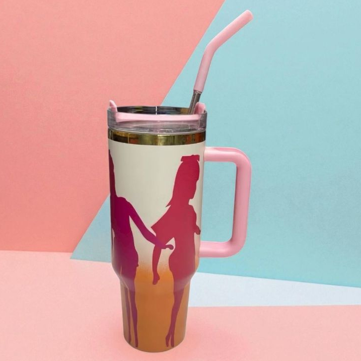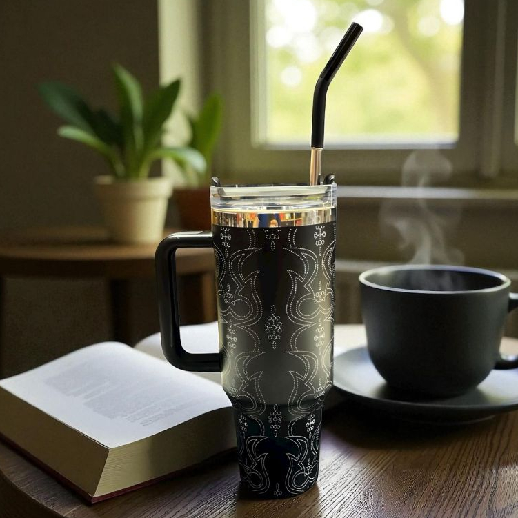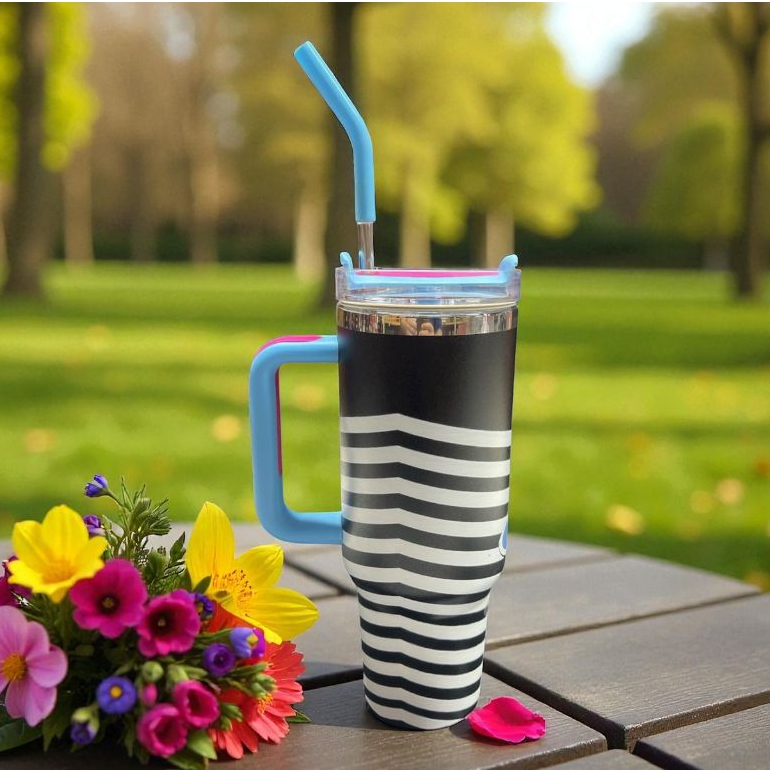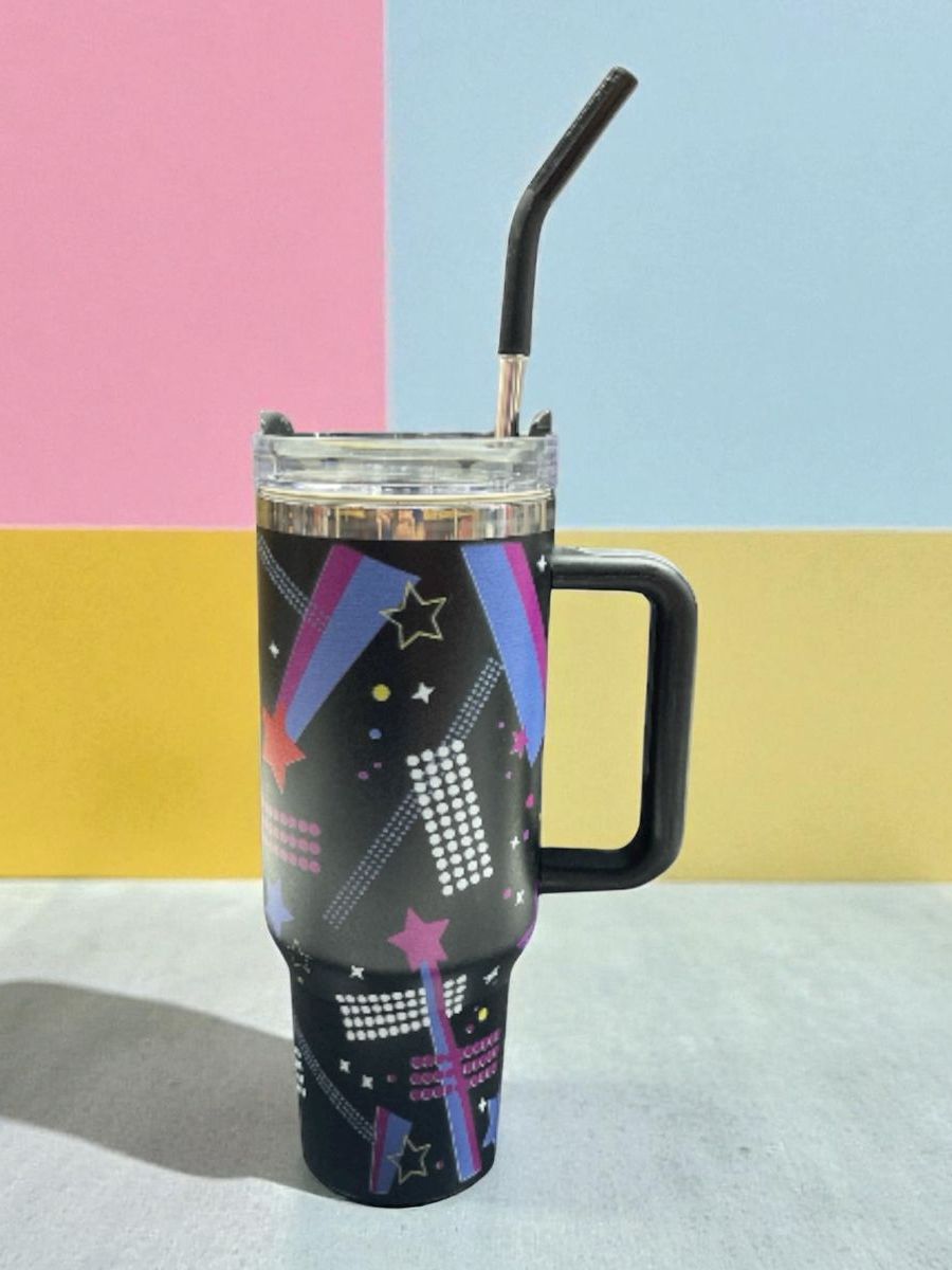 Copo Térmico Inox Alça Flip Straw SEM LOGO com canudo INOX 1200ml Qualidade