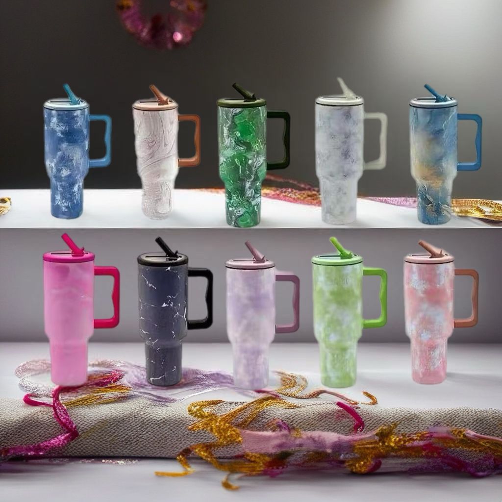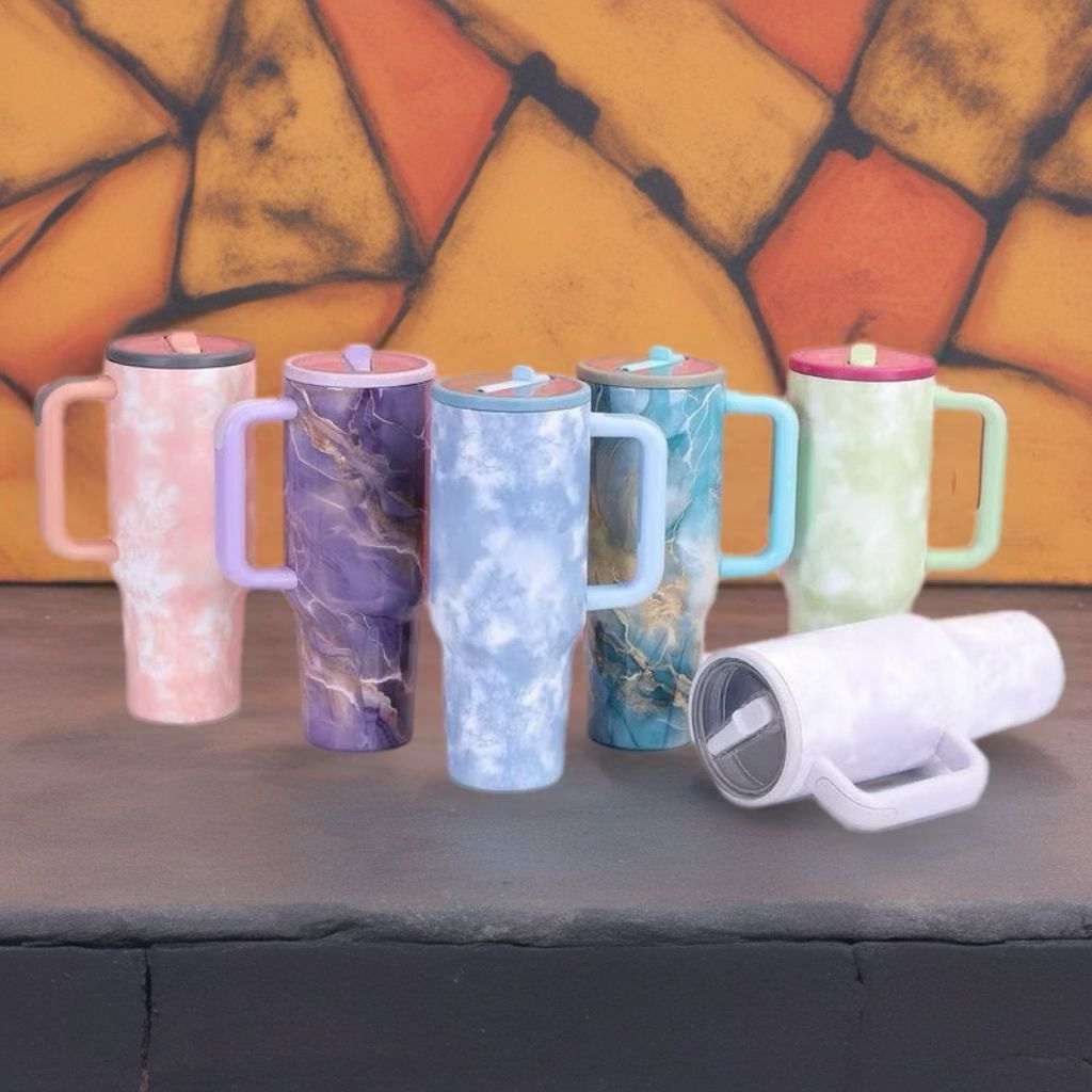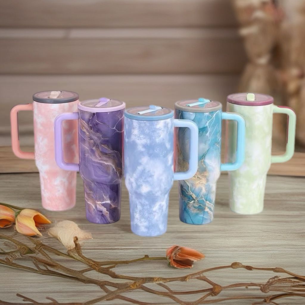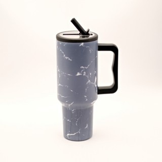 Térmico Copo Marmore com Alça e Canudo Retrátil 1200 ML Aço Inoxidável Isolamento Térmico