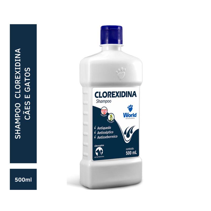 Shampoo De Clorexidina 500Ml e Shampoo Antipulgas e Carrapatos Para Cães 500mL World Veterinaria
