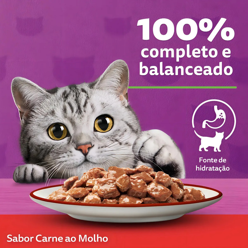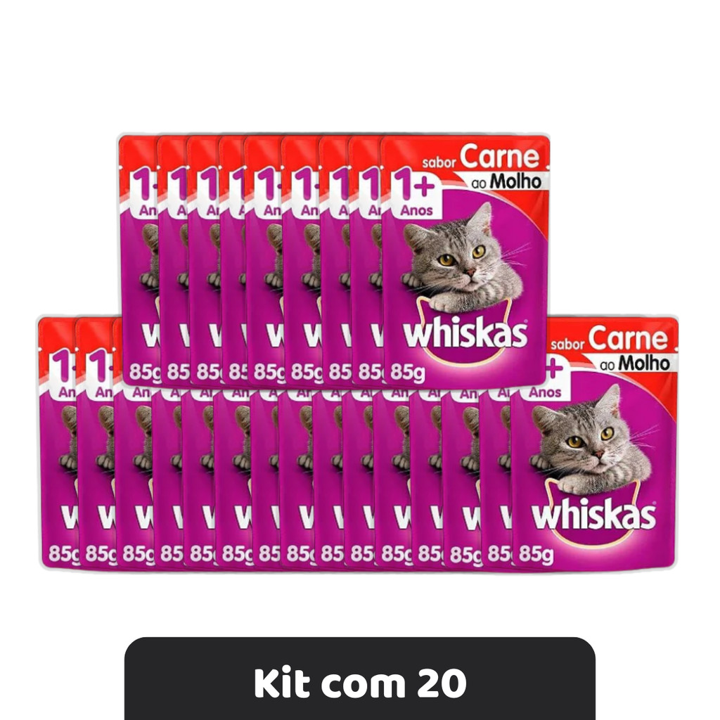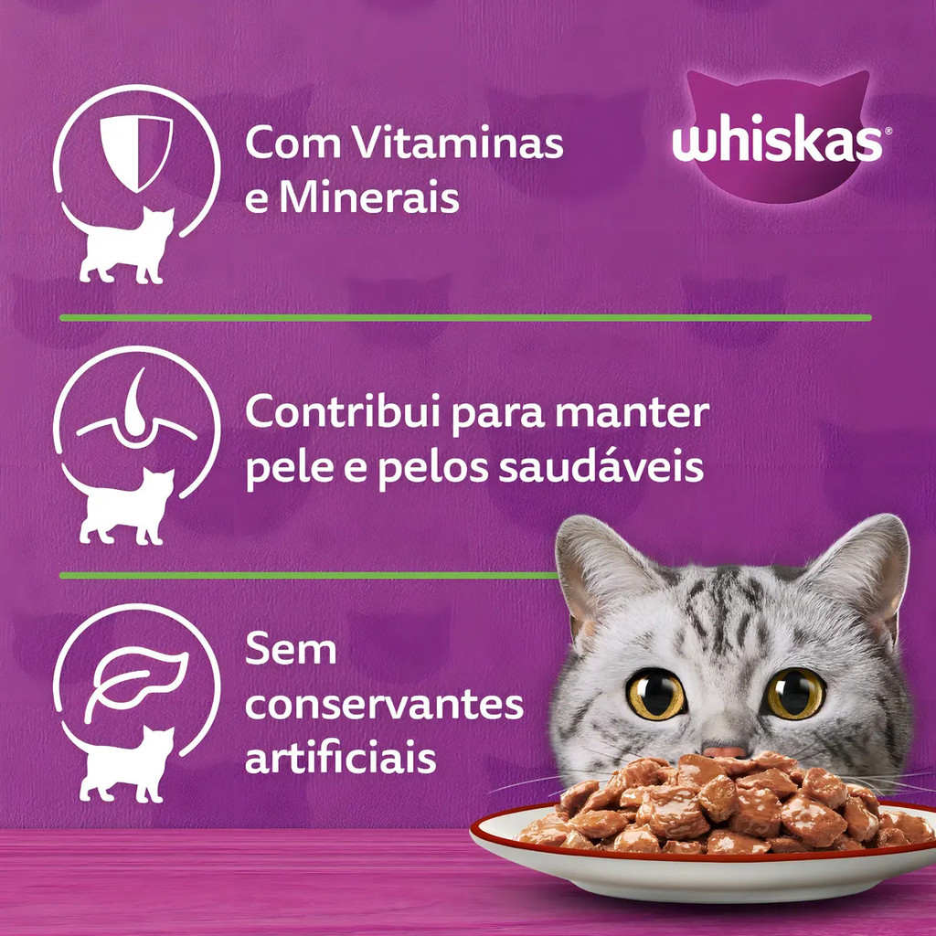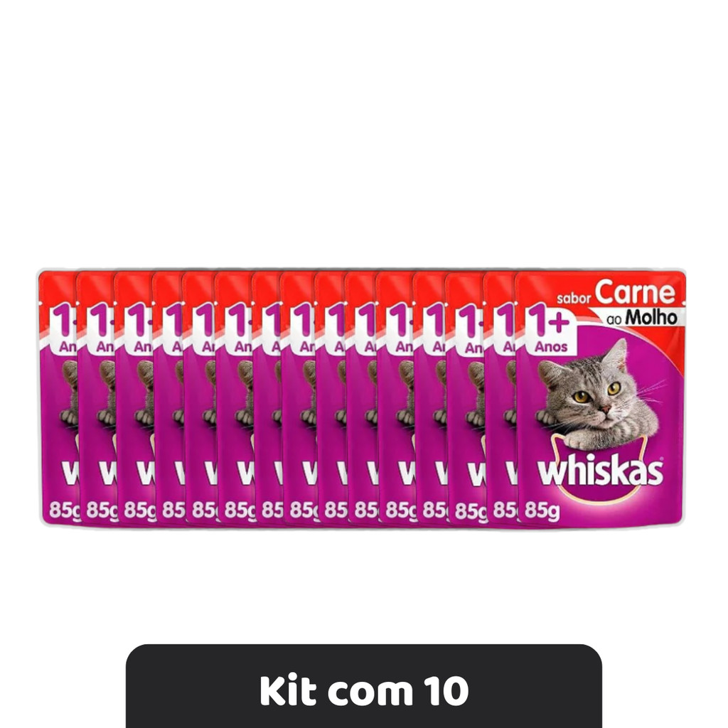 Whiskas Pack Econômico Sache Ração Úmida Para Gatos Carne Ao Molho 85g