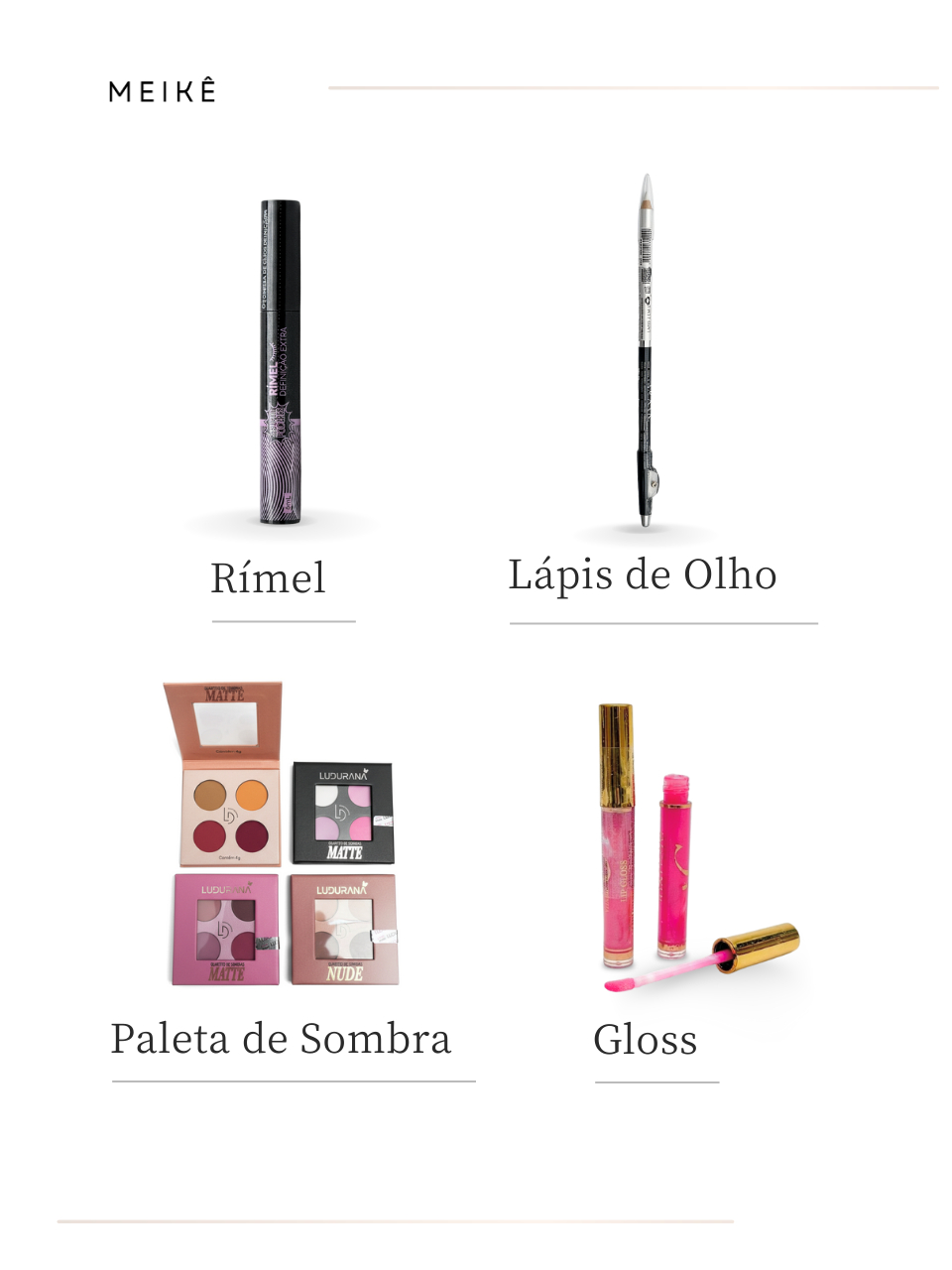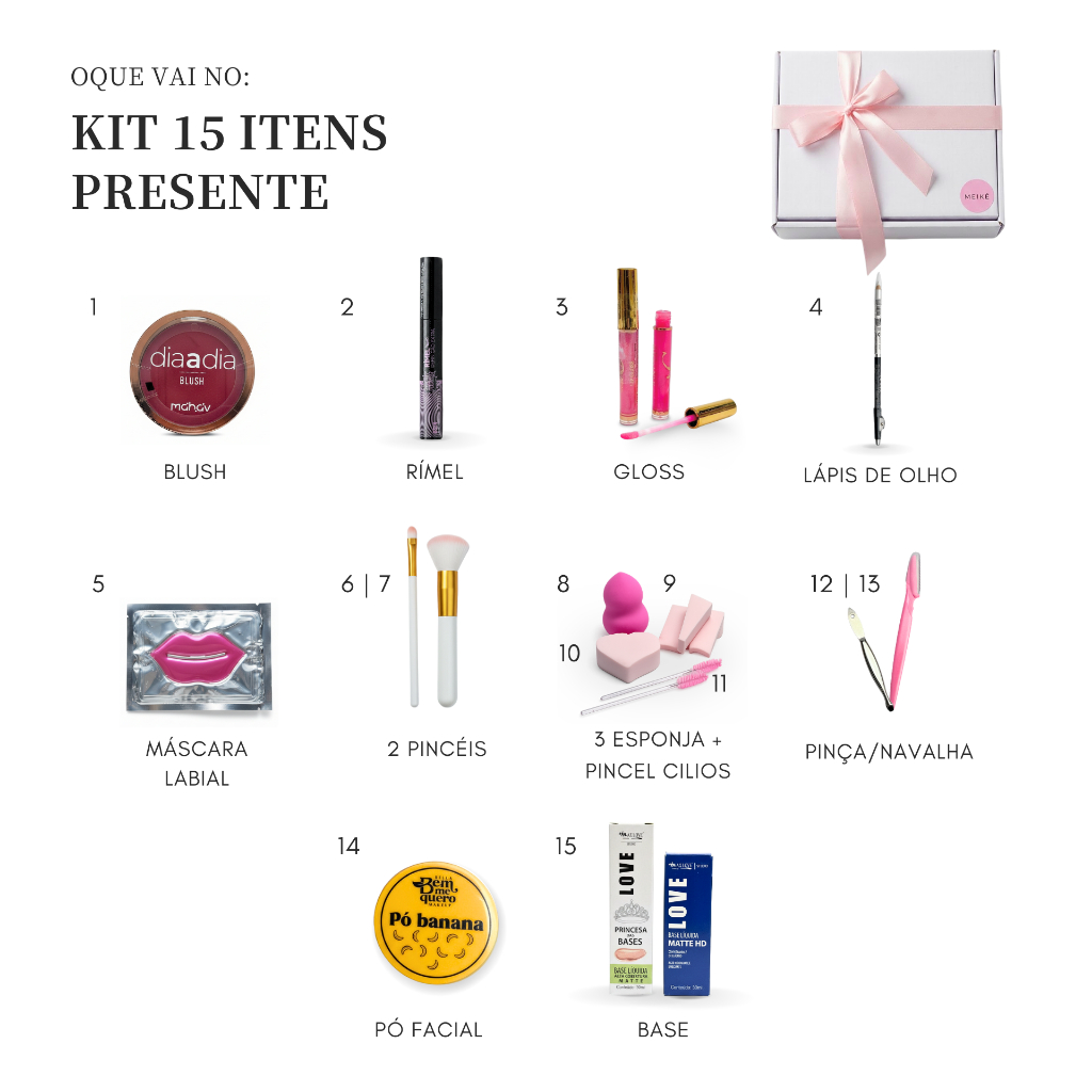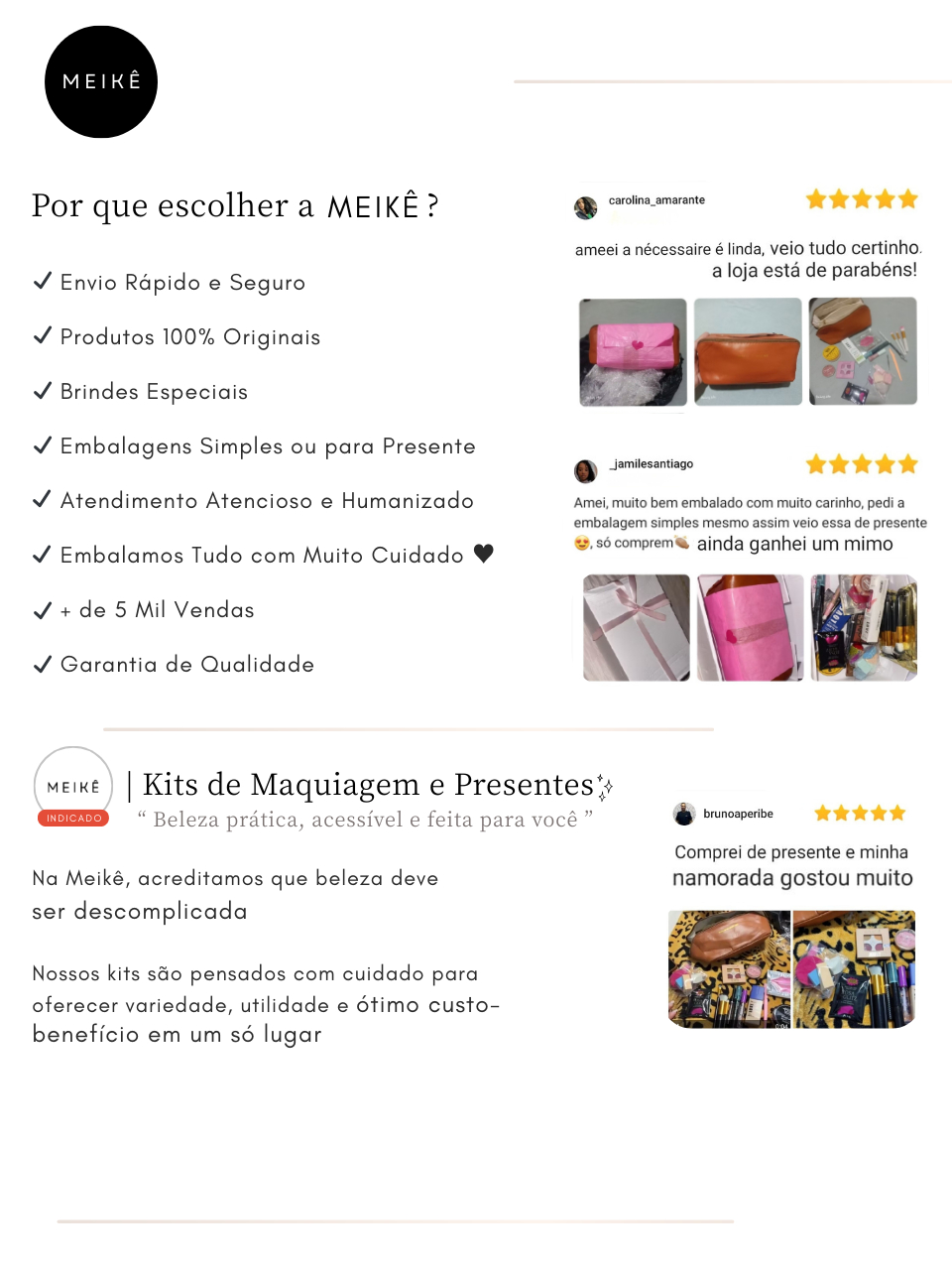 kit Maquiagem Completo - Base, Blush, Gloss, Rimel, Paleta Sombra, Pinceis, Pó compacto, Sabonte Facial, Serum Poran