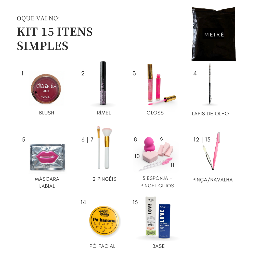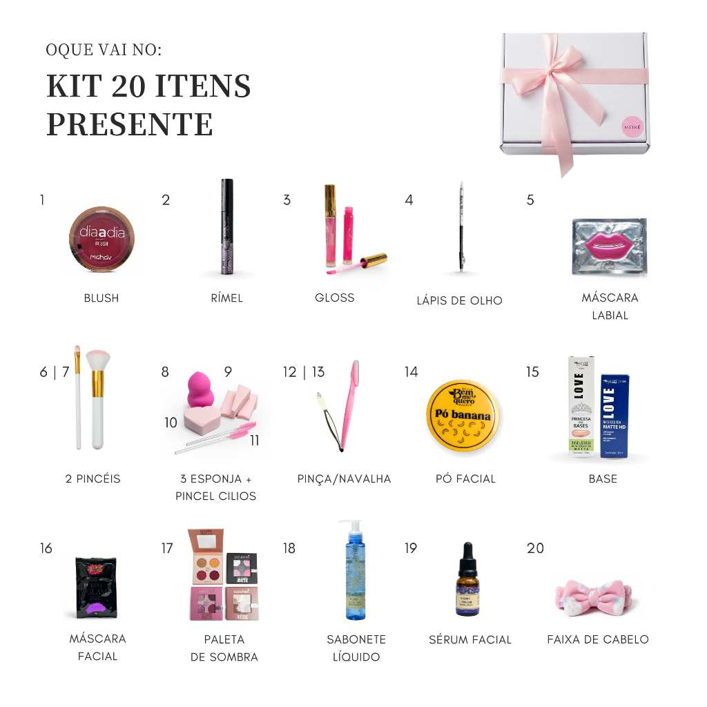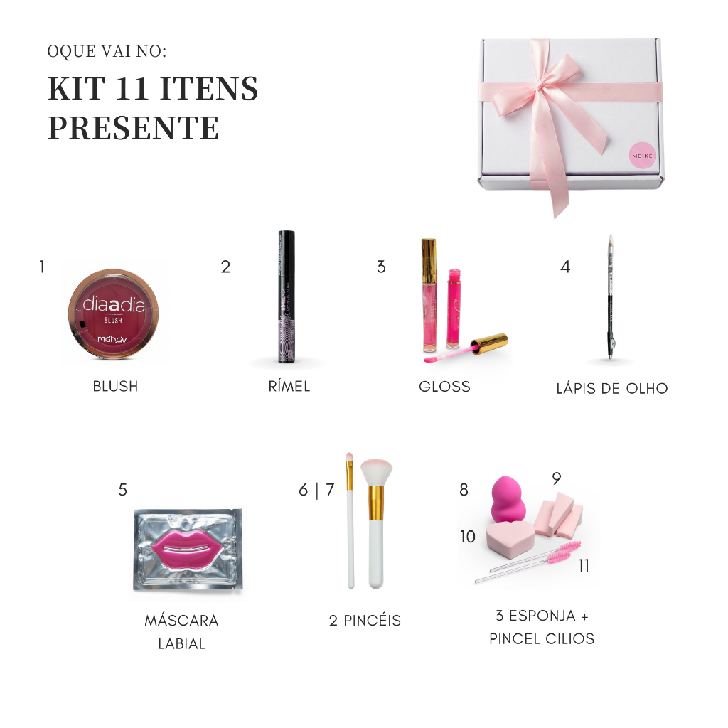 kit Maquiagem Completo - Base, Blush, Gloss, Rimel, Paleta Sombra, Pinceis, Pó compacto, Sabonte Facial, Serum Poran