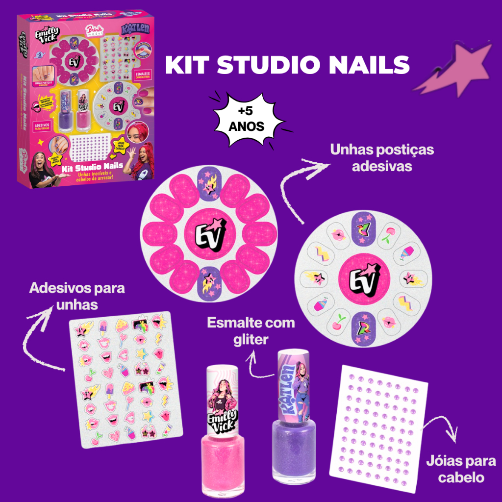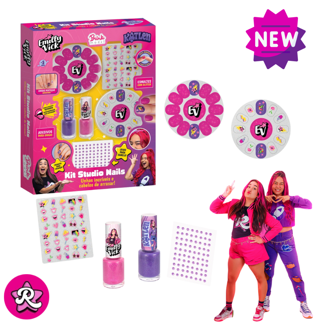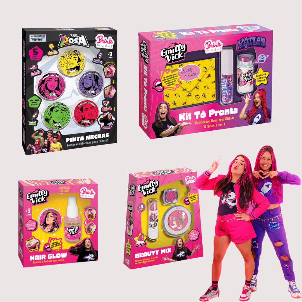 Kit Maquiagem ou Unha ou Cabelo Infantil Emily Vicky Katlen Dos Rosa Youtubers