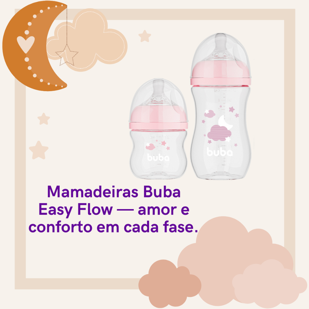 Kit Mamadeira Buba Easy Flow 120ML + 270ML Anticólica Bico Silicone Pétala