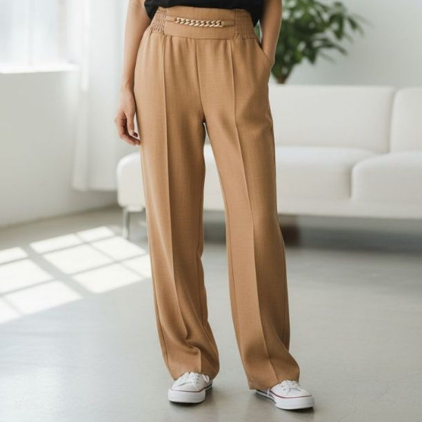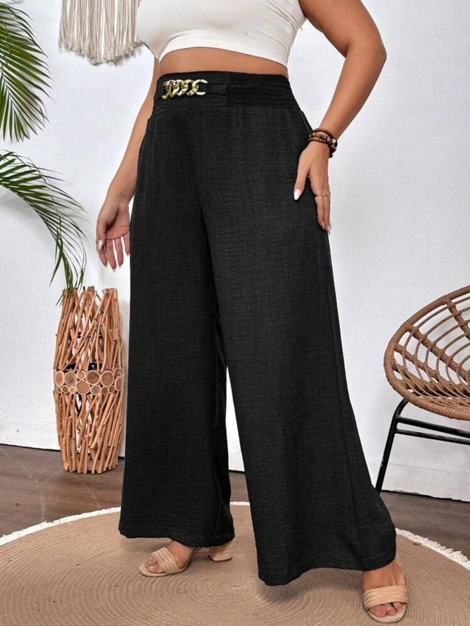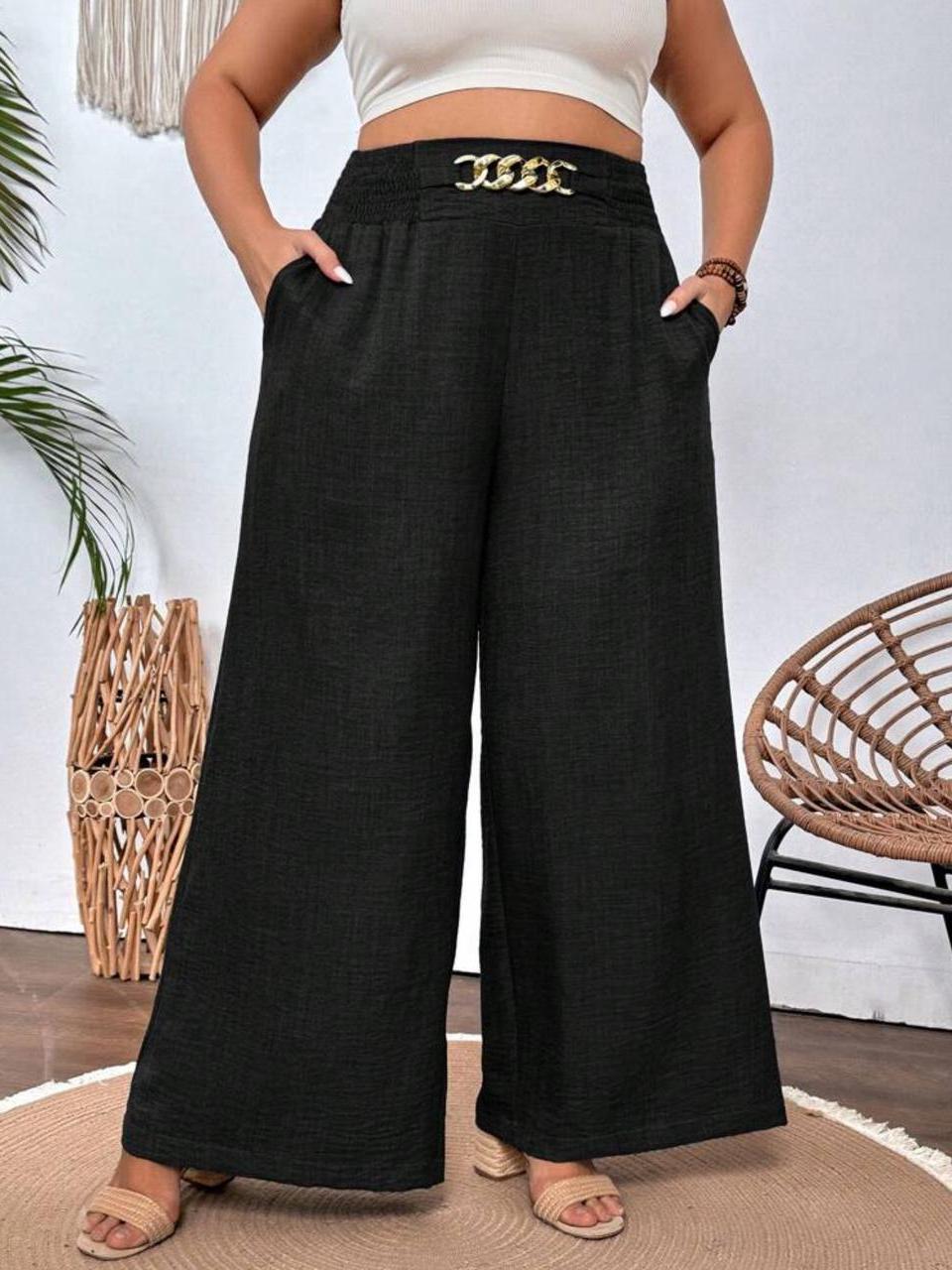 Calça Pantalona Plus Size Feminina Em Linho Cintura Alta elástico na costa - Elegante G1 - G2 - G3