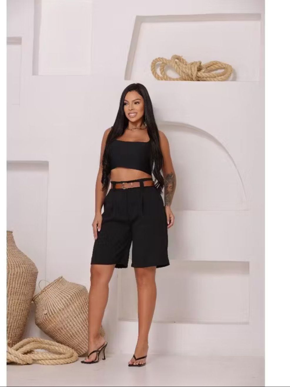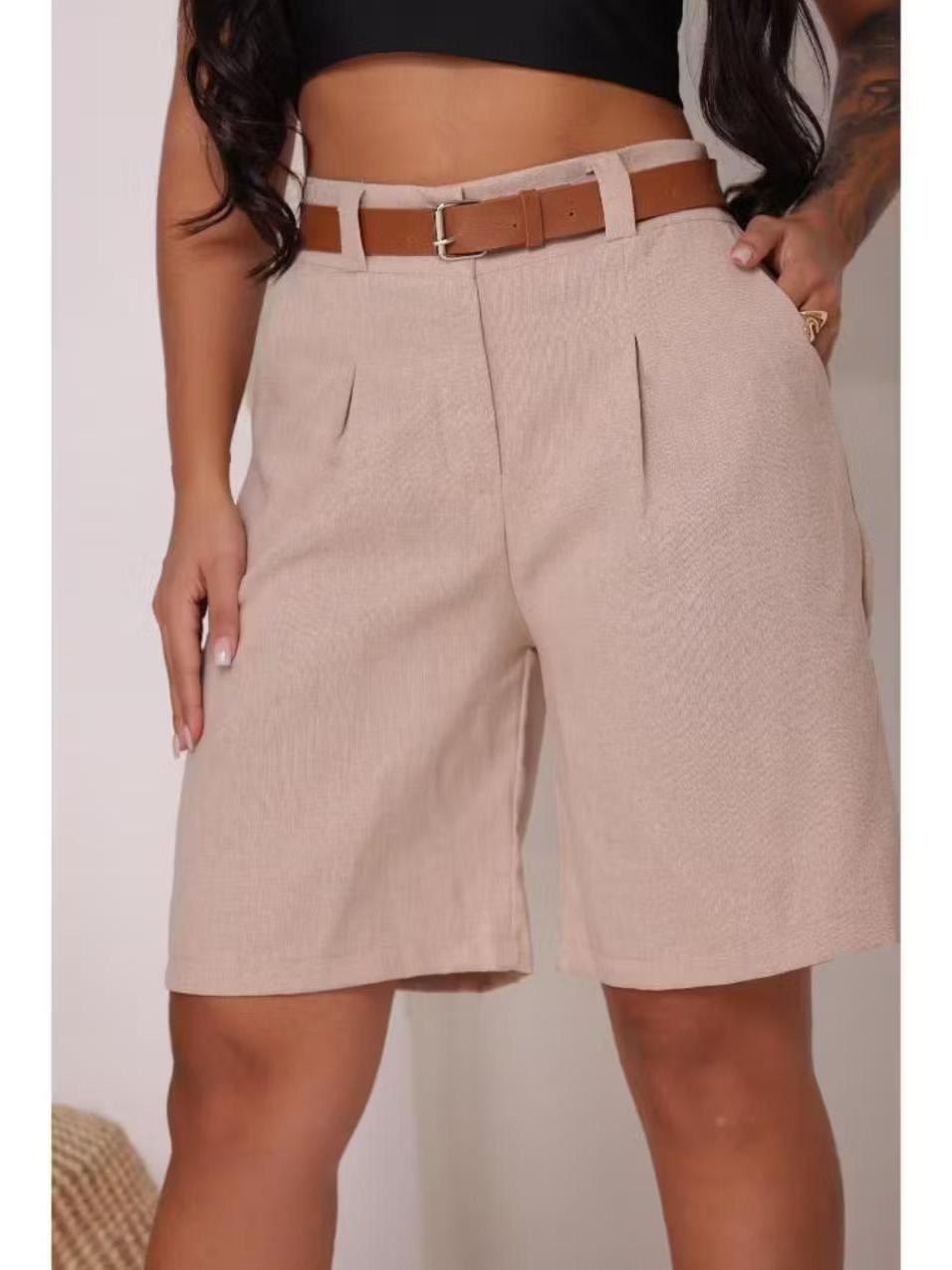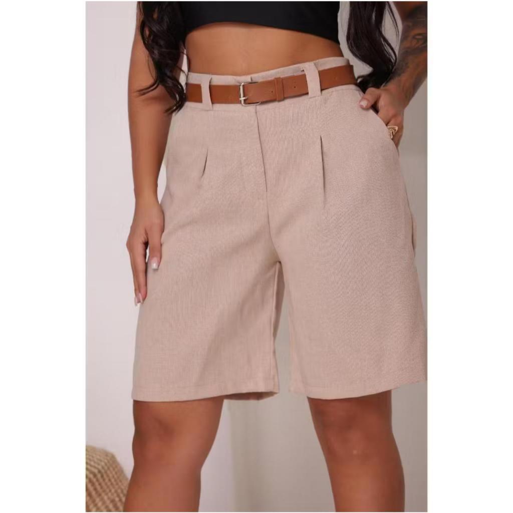 Bermuda Femenino ALFAIATARIA TECIDO LINHO com bolso cintura alta acompanha cinto