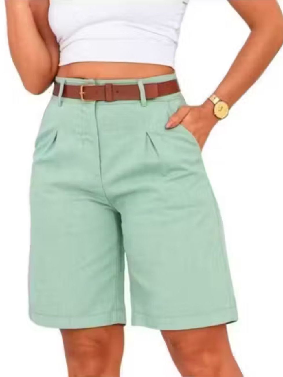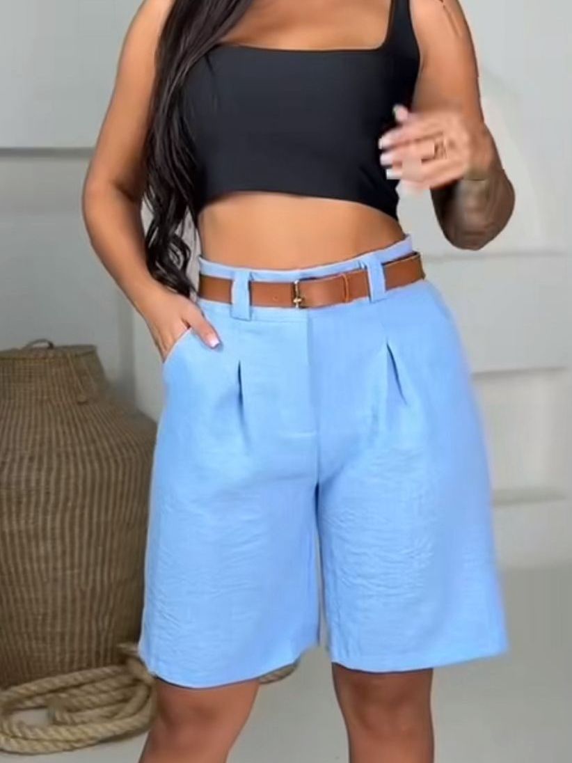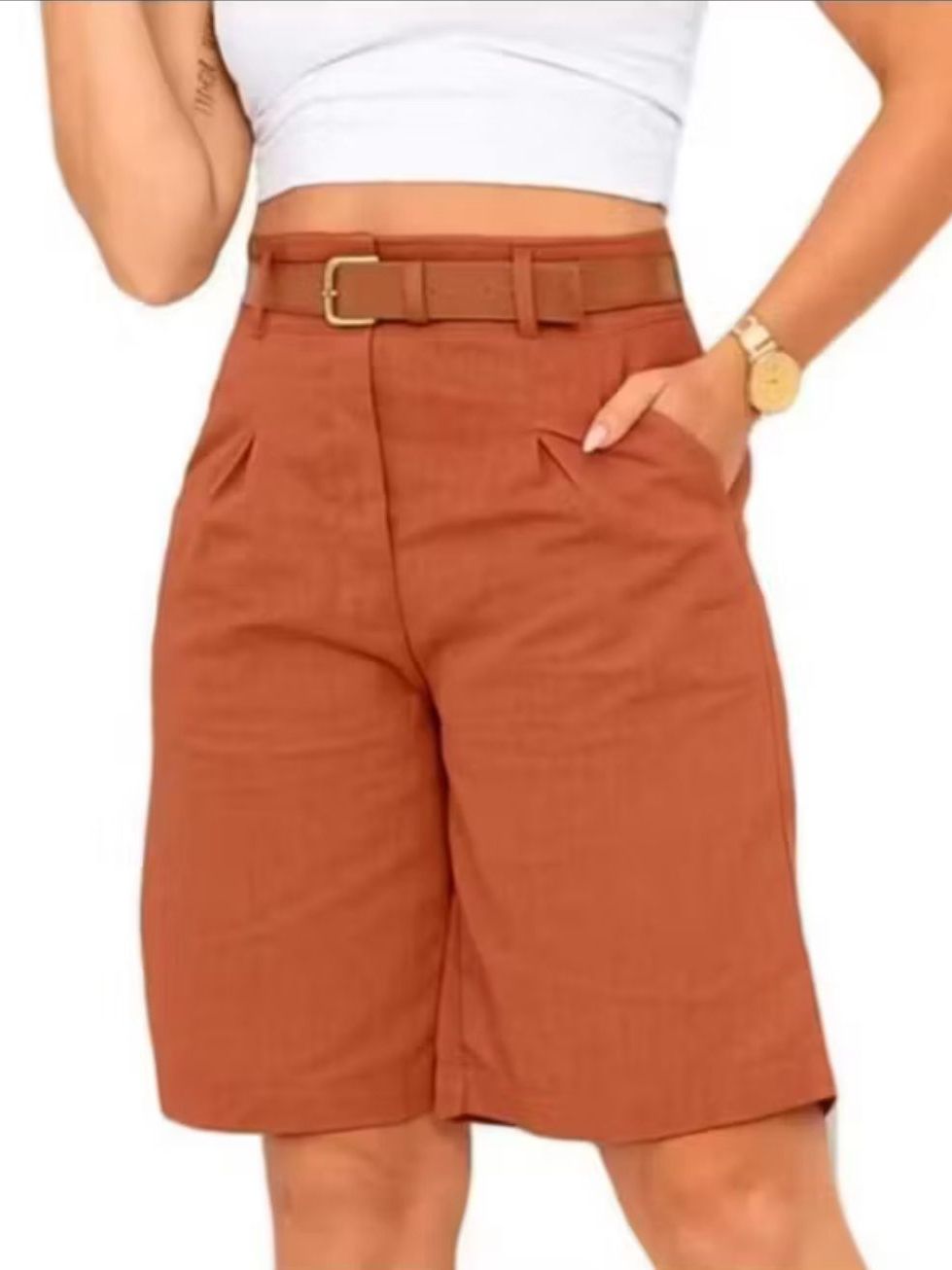 Bermuda Femenino ALFAIATARIA TECIDO LINHO com bolso cintura alta acompanha cinto