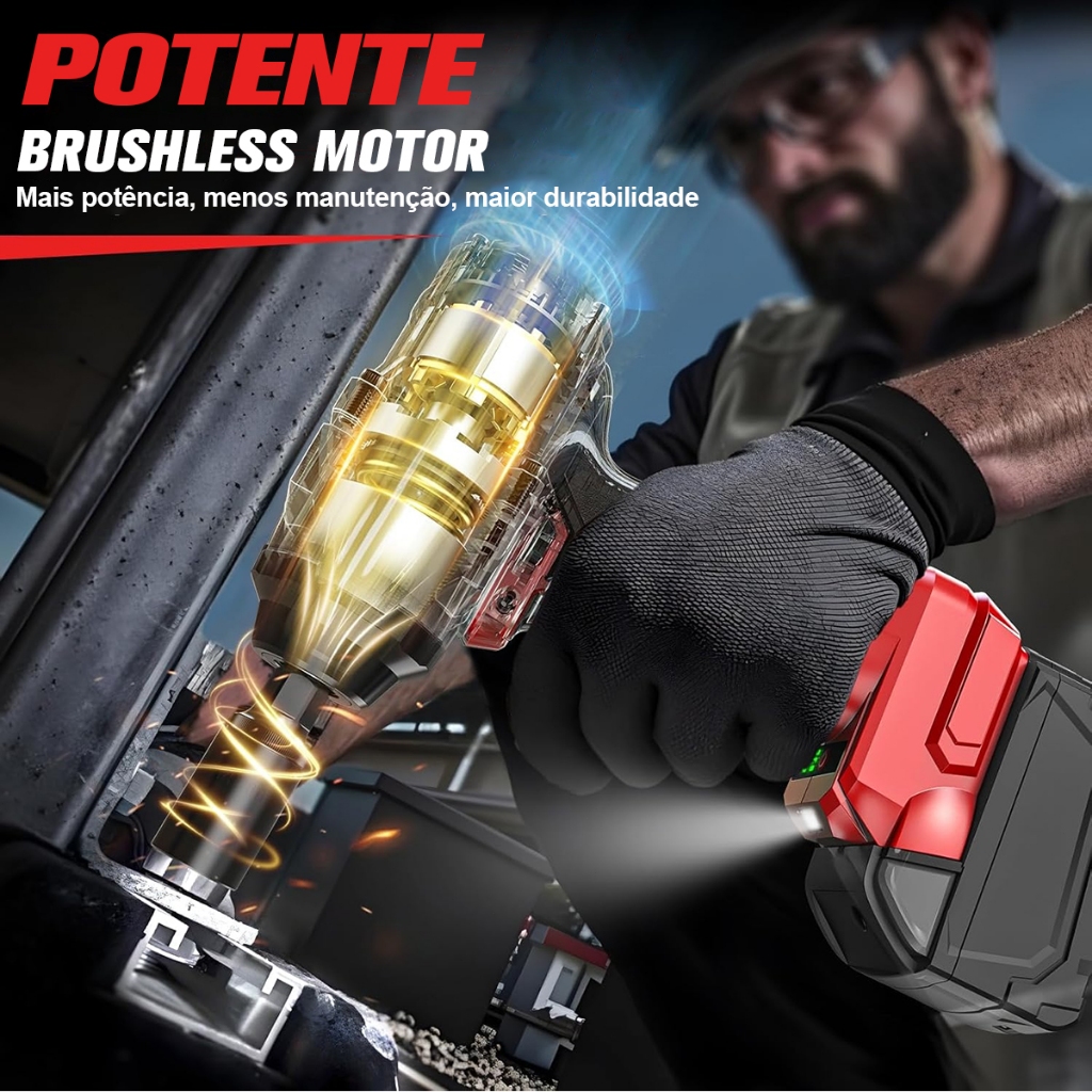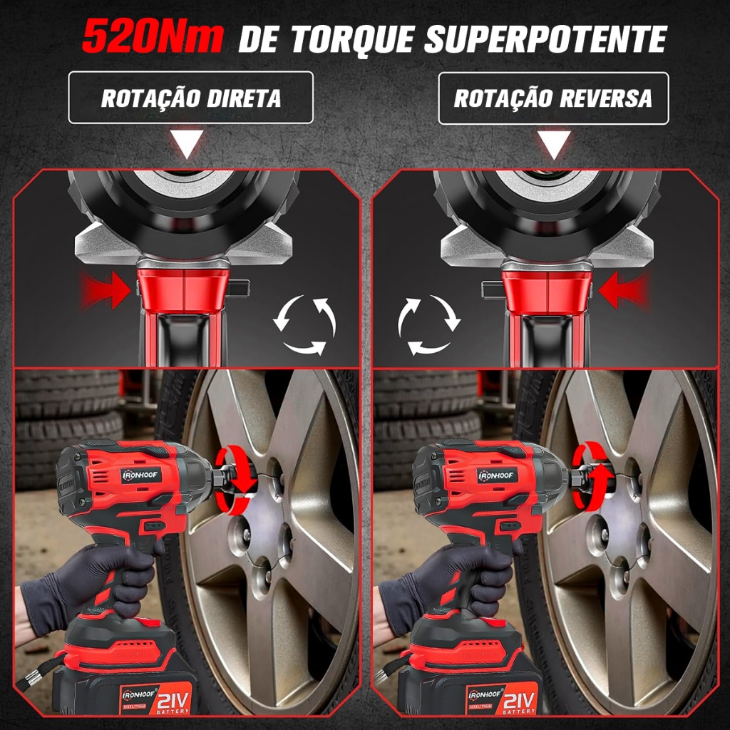 Chave de Impacto Elétrica Parafusadeira Furadeira Brushless 520Nm