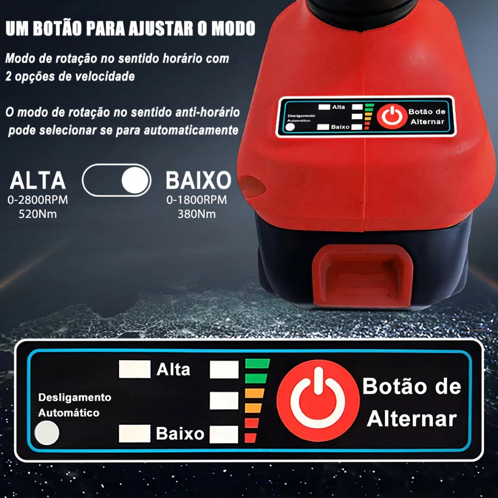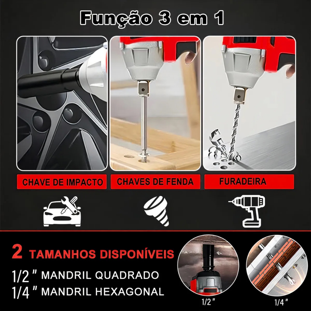 Chave De Impacto 21v Furadeira Parafusadeira Sem Fio Forte com Acessórios e Jogo Soquete