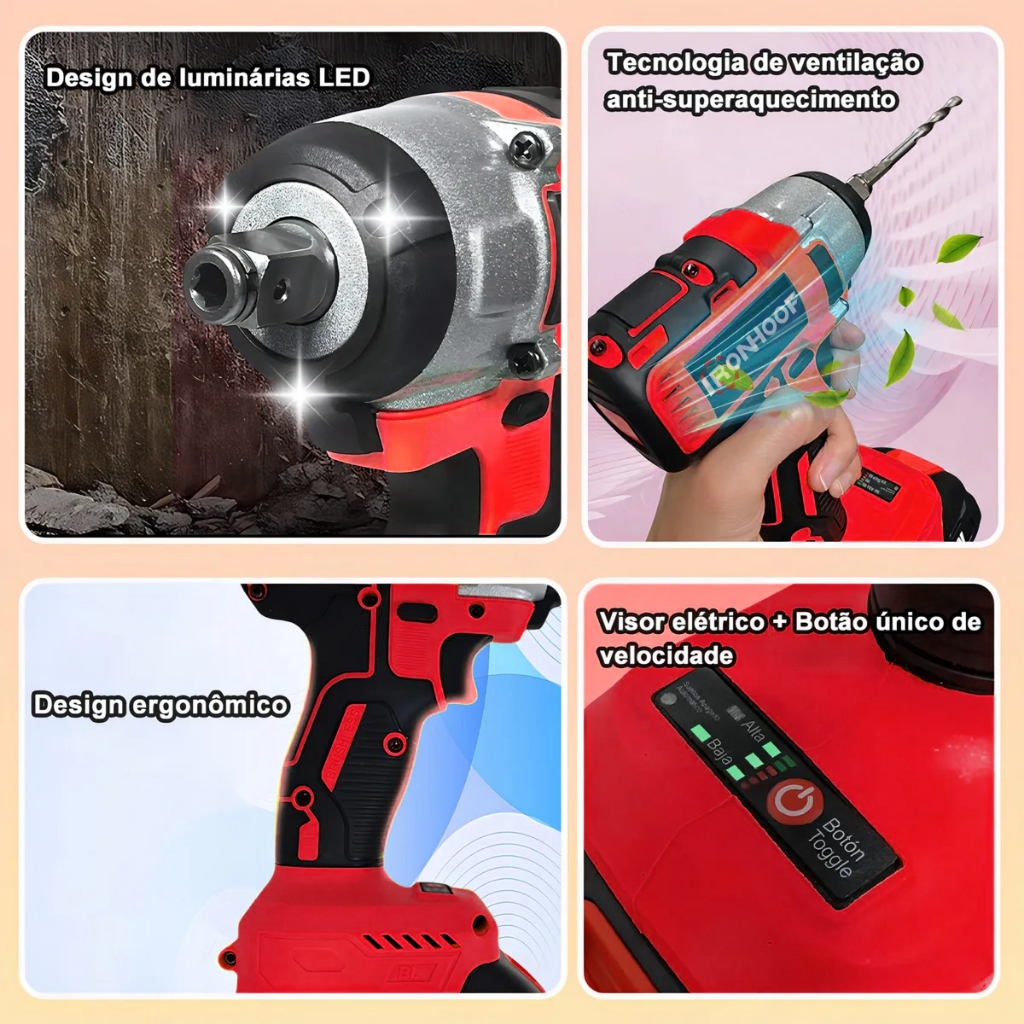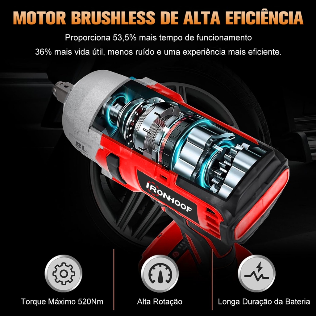 Chave De Impacto Potente Parafusadeira Brushless 520Nm