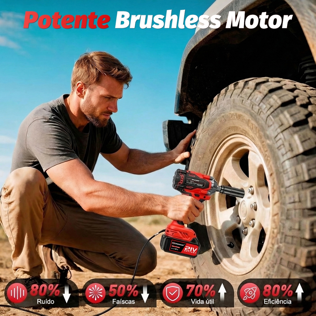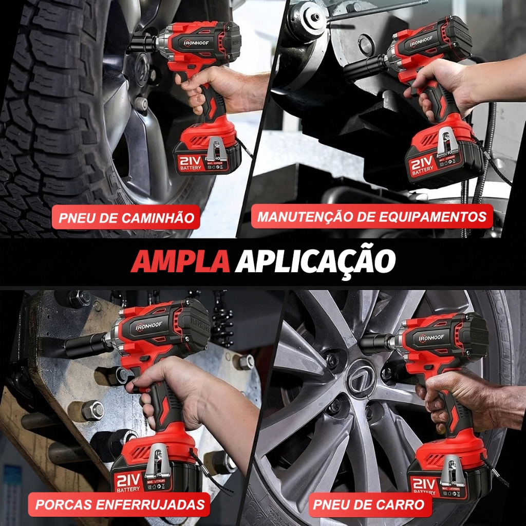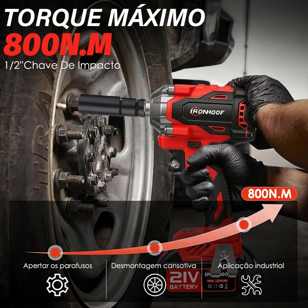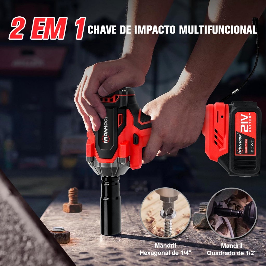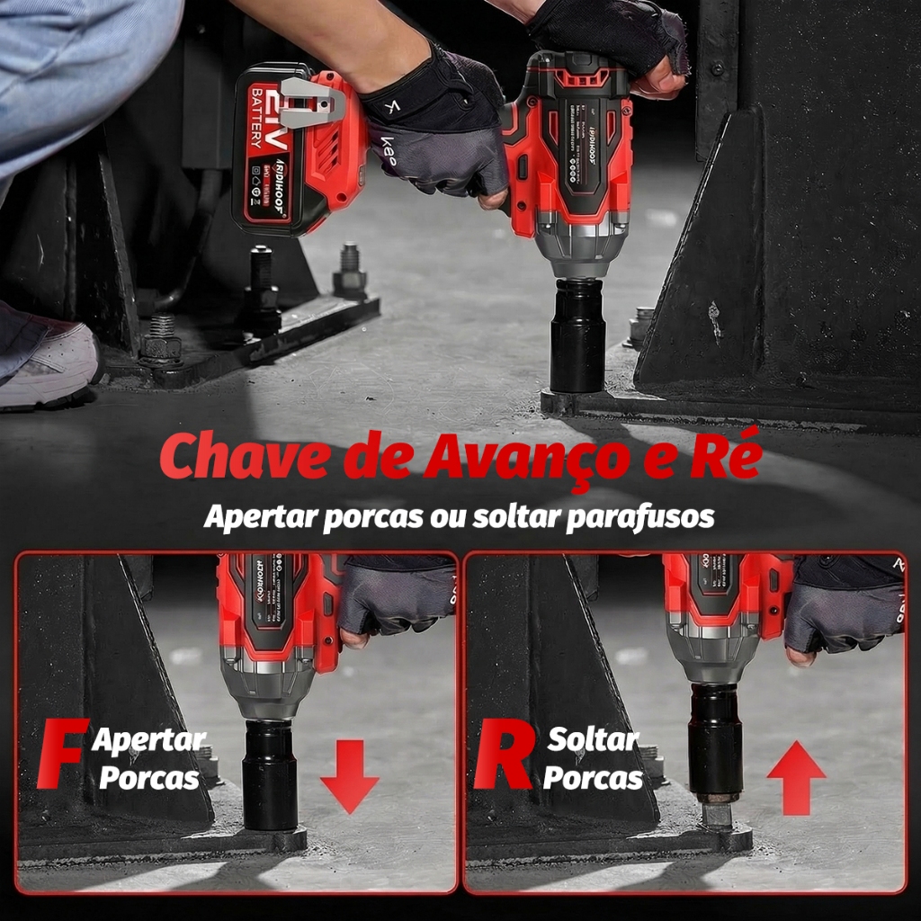 Chave de Impacto Potente 800/520Nm Parafusadeira Brushless Profissional 2 Bateria
