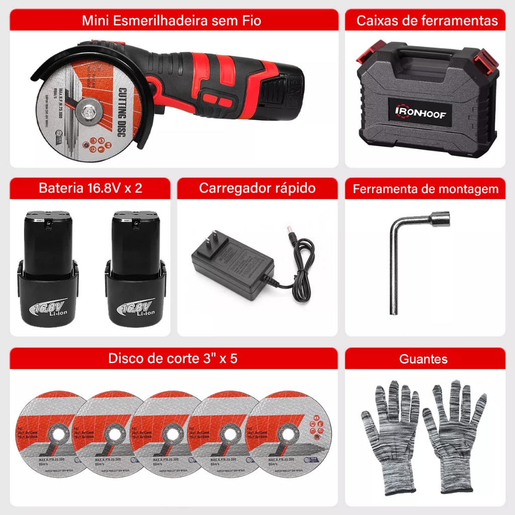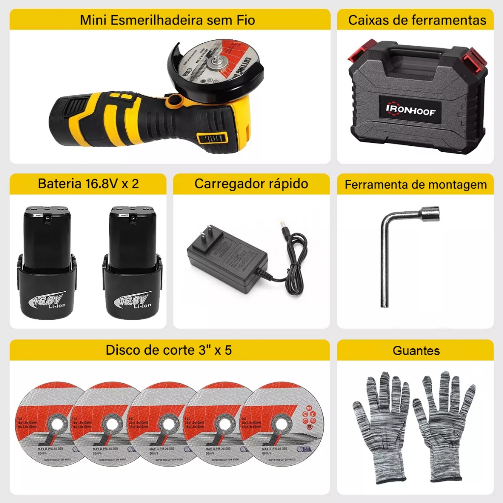 Esmerilhadeira Lixadeira Angular 16.8V Portátil 75mm 2 Bateria Brushless
