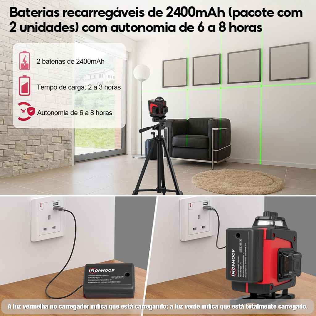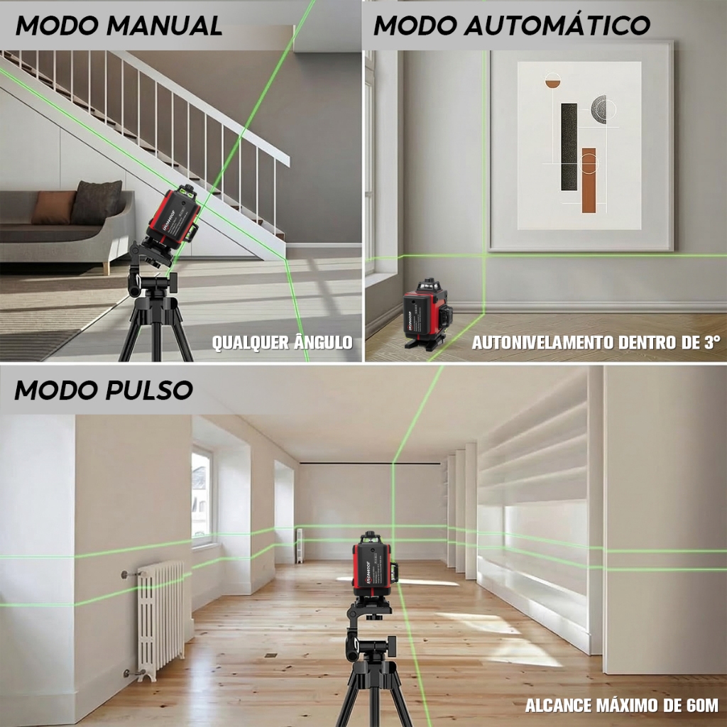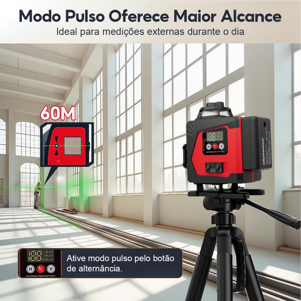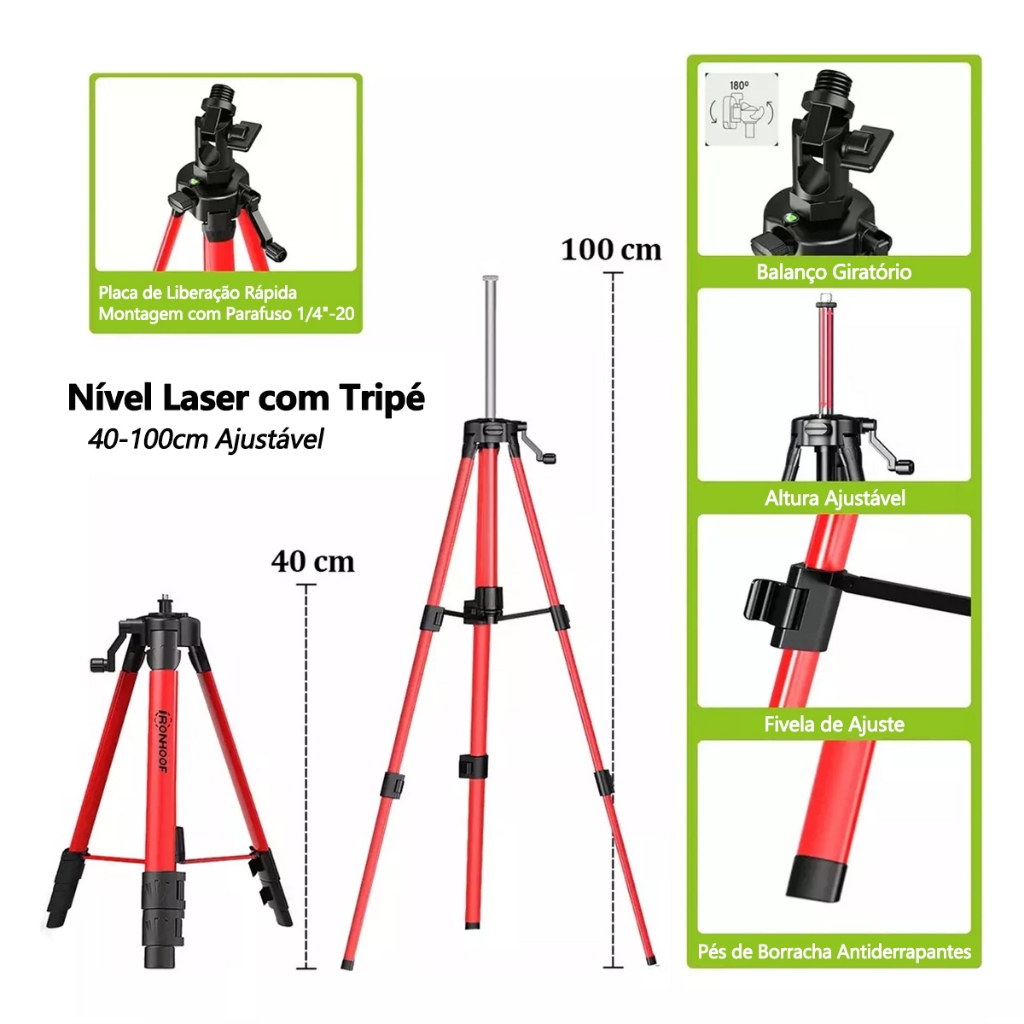 Nivel A Laser Profissional 16 Linhas Com Tripé Verde 4D 2 Baterias