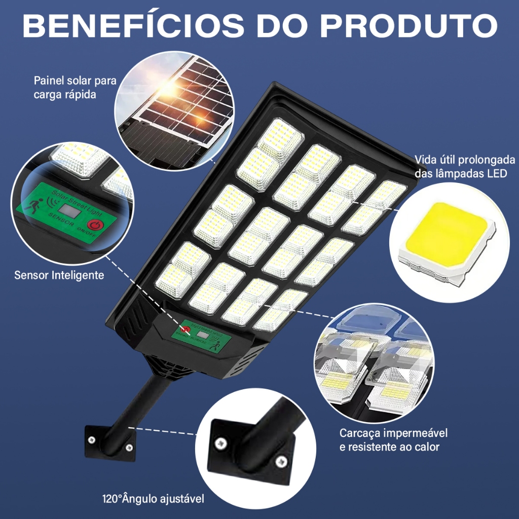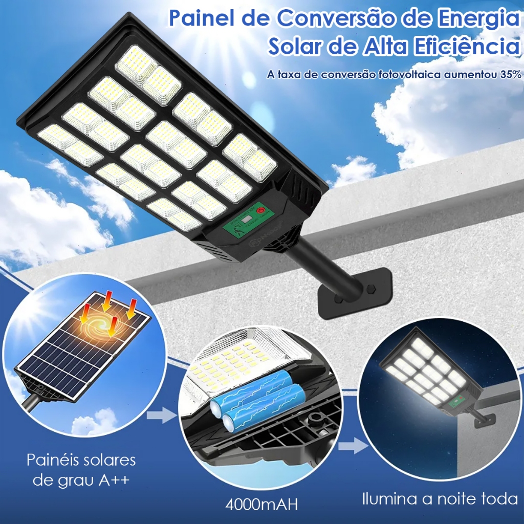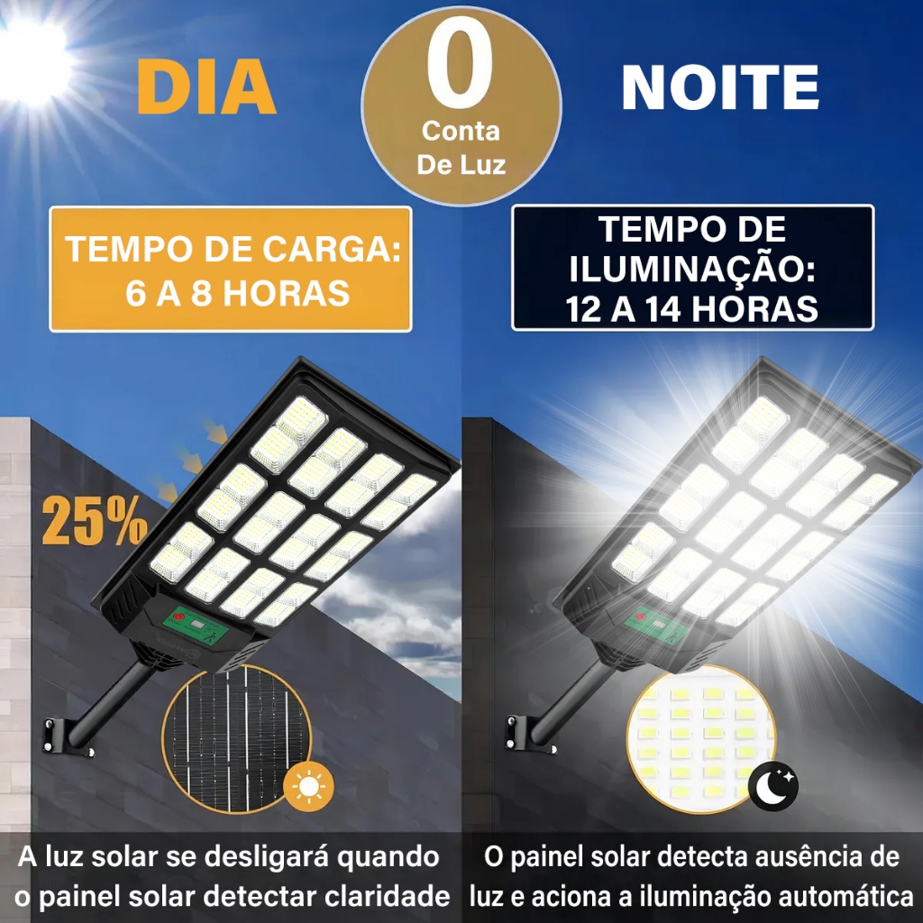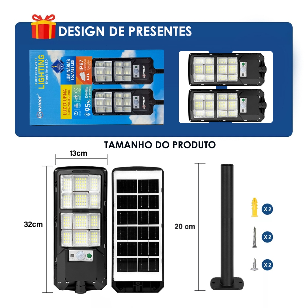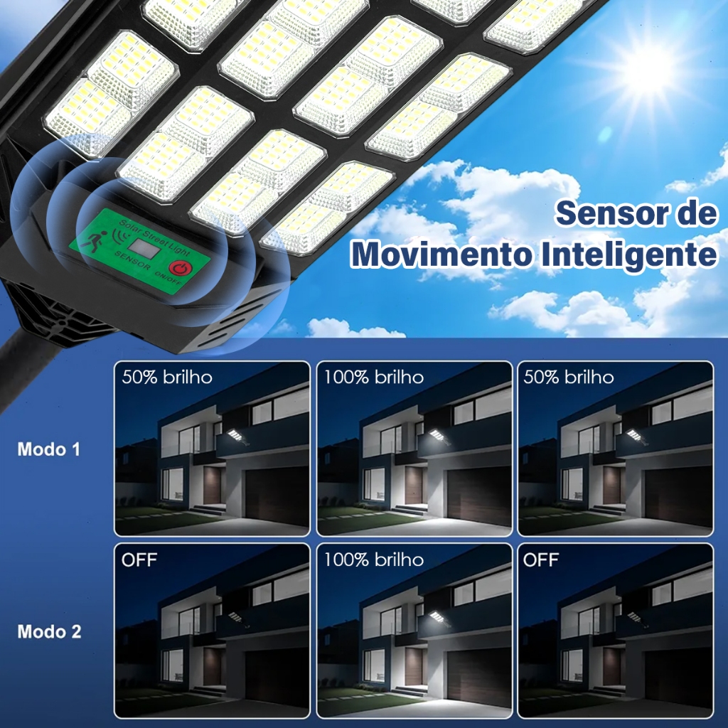 Kit 2 Luminária Solar Com Sensor 900w Luz Solar Ip67