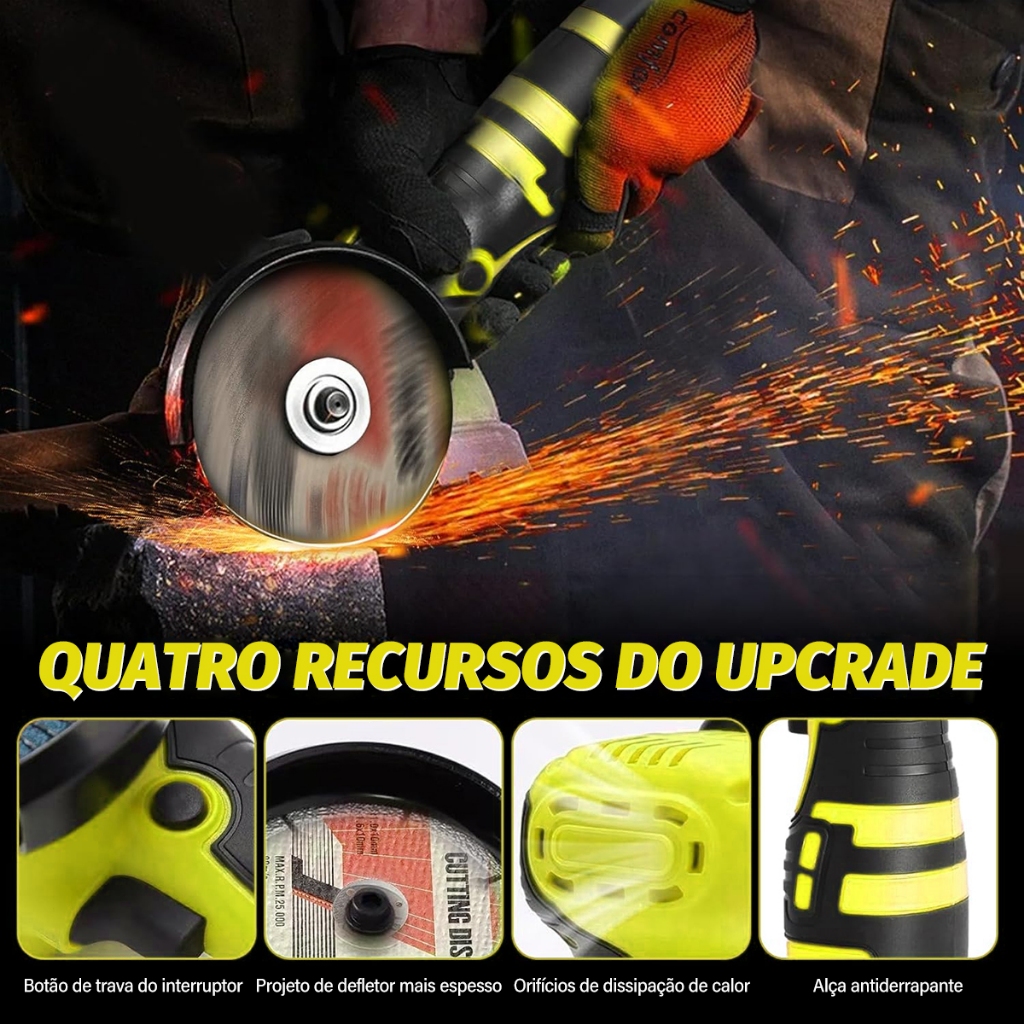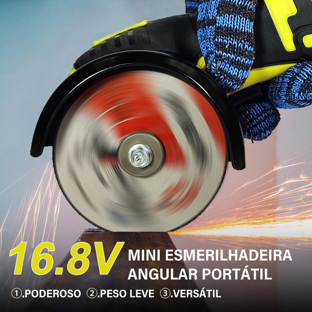 Brushles Esmerilhadeira Lixadeira Elétrica Bivolt 110v/220v 16.8V 2 Bateria