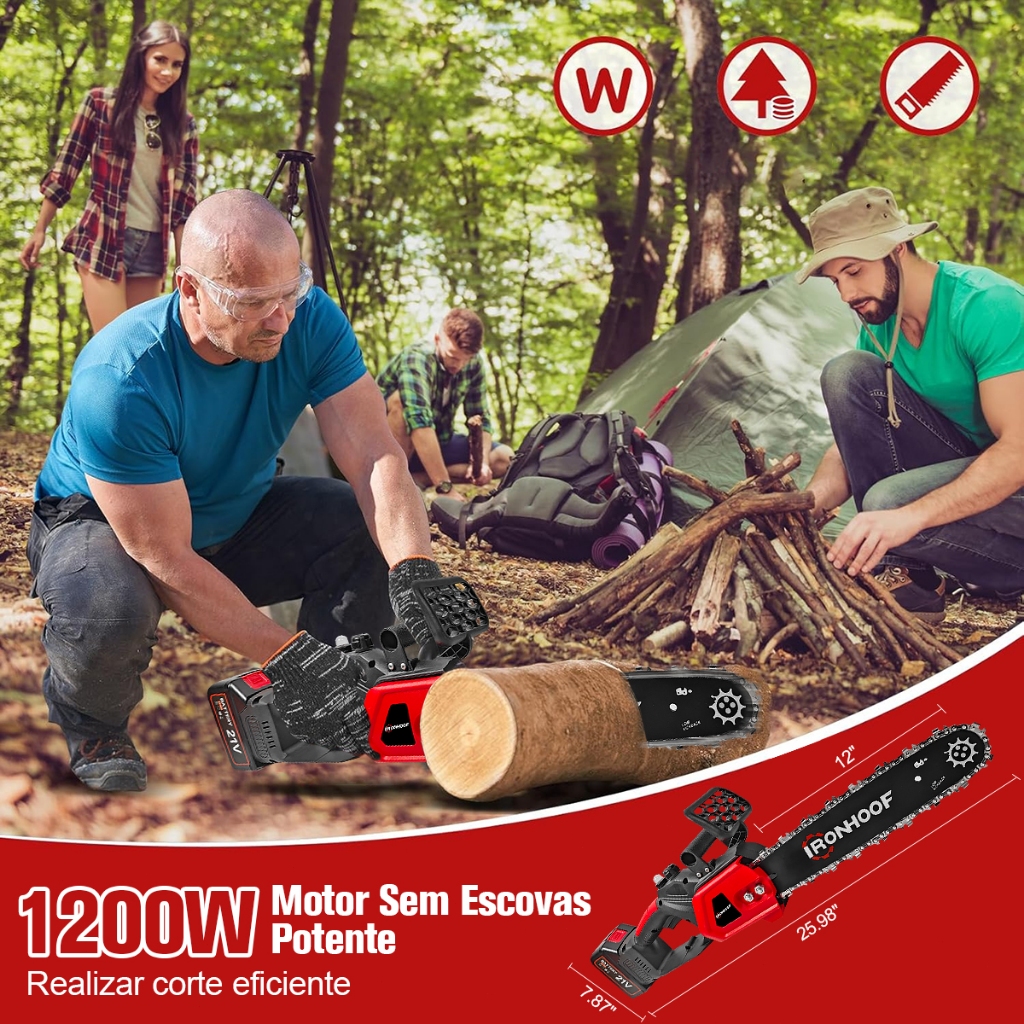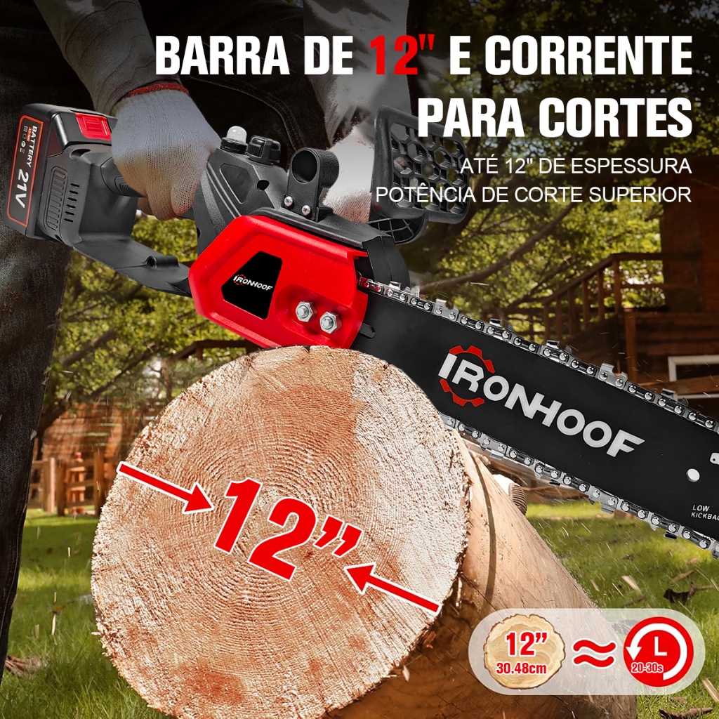 MotoSerra Elétrica 12 Polegadas Profissional 1200W Sem Fio Portátil Bivolt 110v/127v/220v 21V 2 Bateria